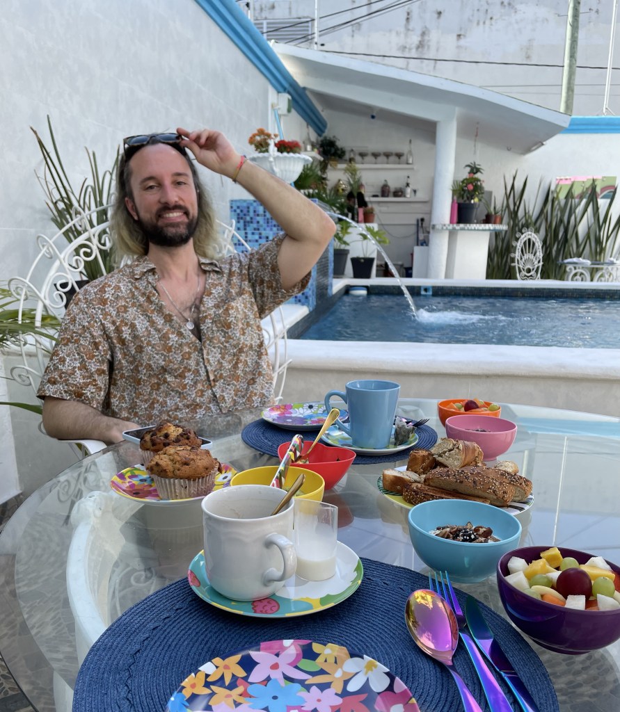 Den ersten Abend waren wir ganz schön platt: langer Tag, Zeitverschiebung (unser Tag war also 6 Stunden länger als sonst), deutlich wärmer als zuhause (ca. 25°C Unterschied) und komplett neue Umgebung. Aber: Endlich in Mexiko! 🎉