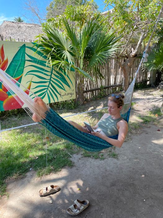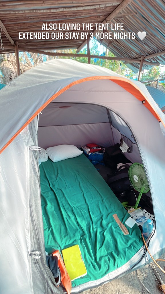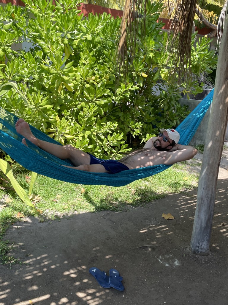 Gebucht haben wir 4 Nächte im Mapache Hostel, Übernachtung im Zelt bei 25°C nachts. Aber die Bewertungen waren durchweg hervorragend, die Übernachtungen günstig – bei so einem Schnäppchen muss man zuschlagen (und wir möchten unser Erspartes eben gut einteilen für die Reise). Ich war trotzdem skeptisch, wie gut man darin schlafen würde. Aber: mit richtiger Matratze im Zelt und einem Ventilator als Aircon ging das hervorragend. Wir haben direkt nochmal 3 weitere Nächte gebucht.