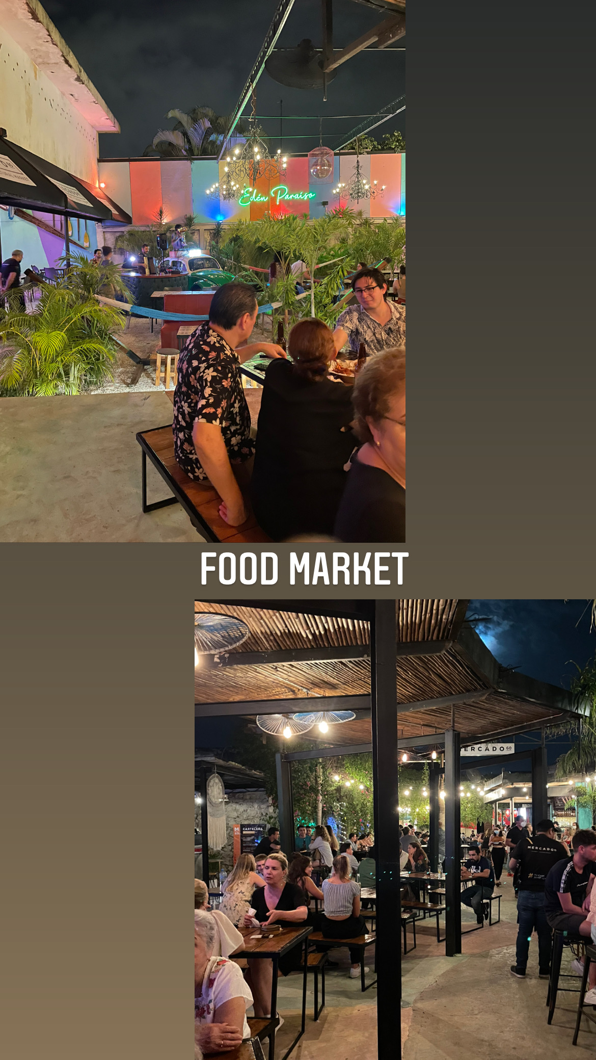 Ab 17 Uhr war ich aber auch wieder klarer Gedanken fähig und man (= ich) konnte sich wieder vor die Tür und in den nicht-klimatisierten Bereichen bewegen. Nach der Tour und ausreichender Siesta sind wir abends also nochmal losgezogen, erst zu einem Food Market wo es vegane Burger für uns gab und danach zur Noche Mexicana.