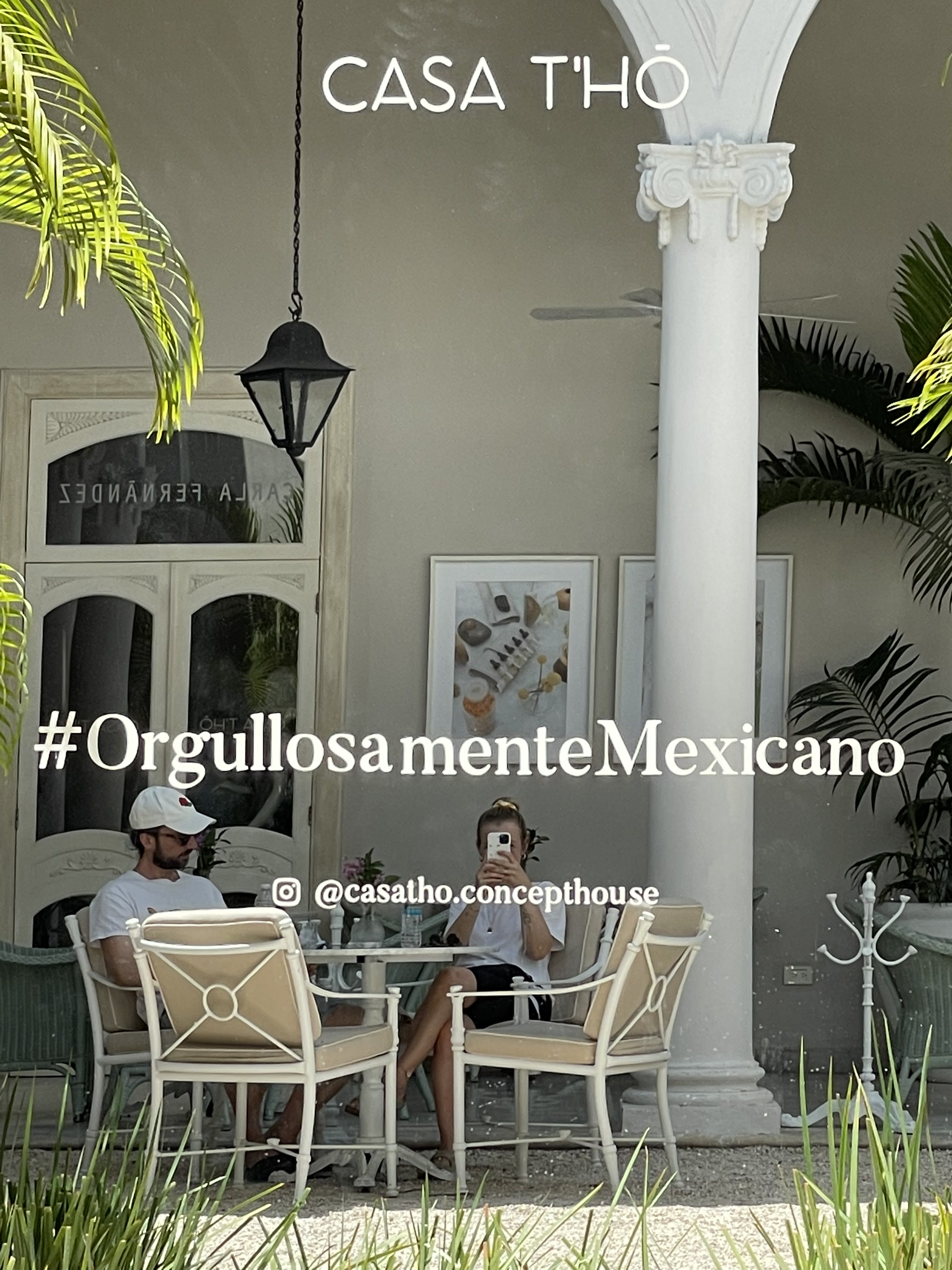 Nachdem die Biciruta um 12.30 Uhr vorbei war, haben wir uns erstmal ein schattiges Plätzchen gesucht: Die Casa T´HŌ. Das ist ein Concept House auf der angesprochenen Prachtstraße. T´HŌ war der Name der zerstörten Maya-Stadt, an deren Stelle heute Mérida steht.