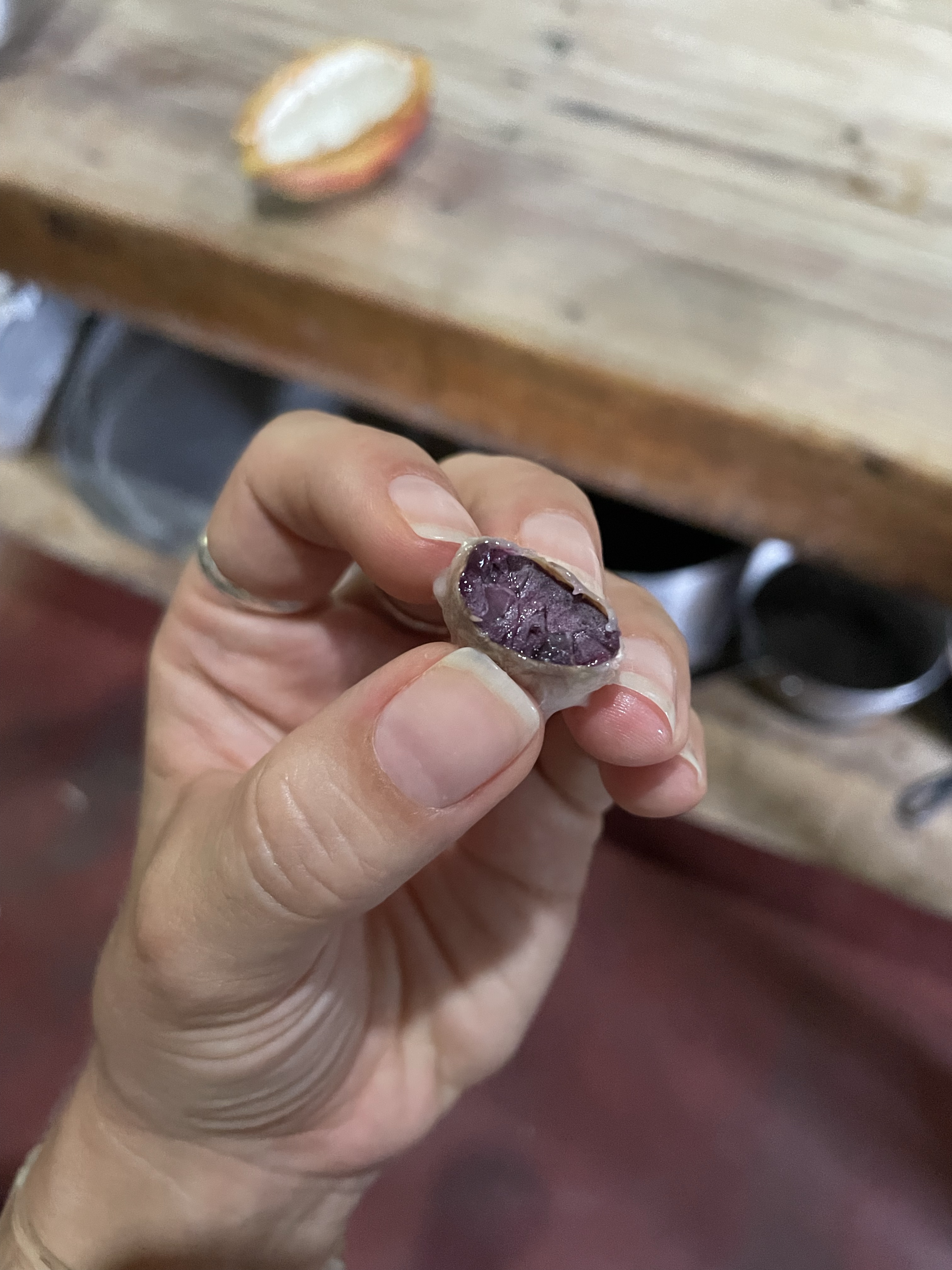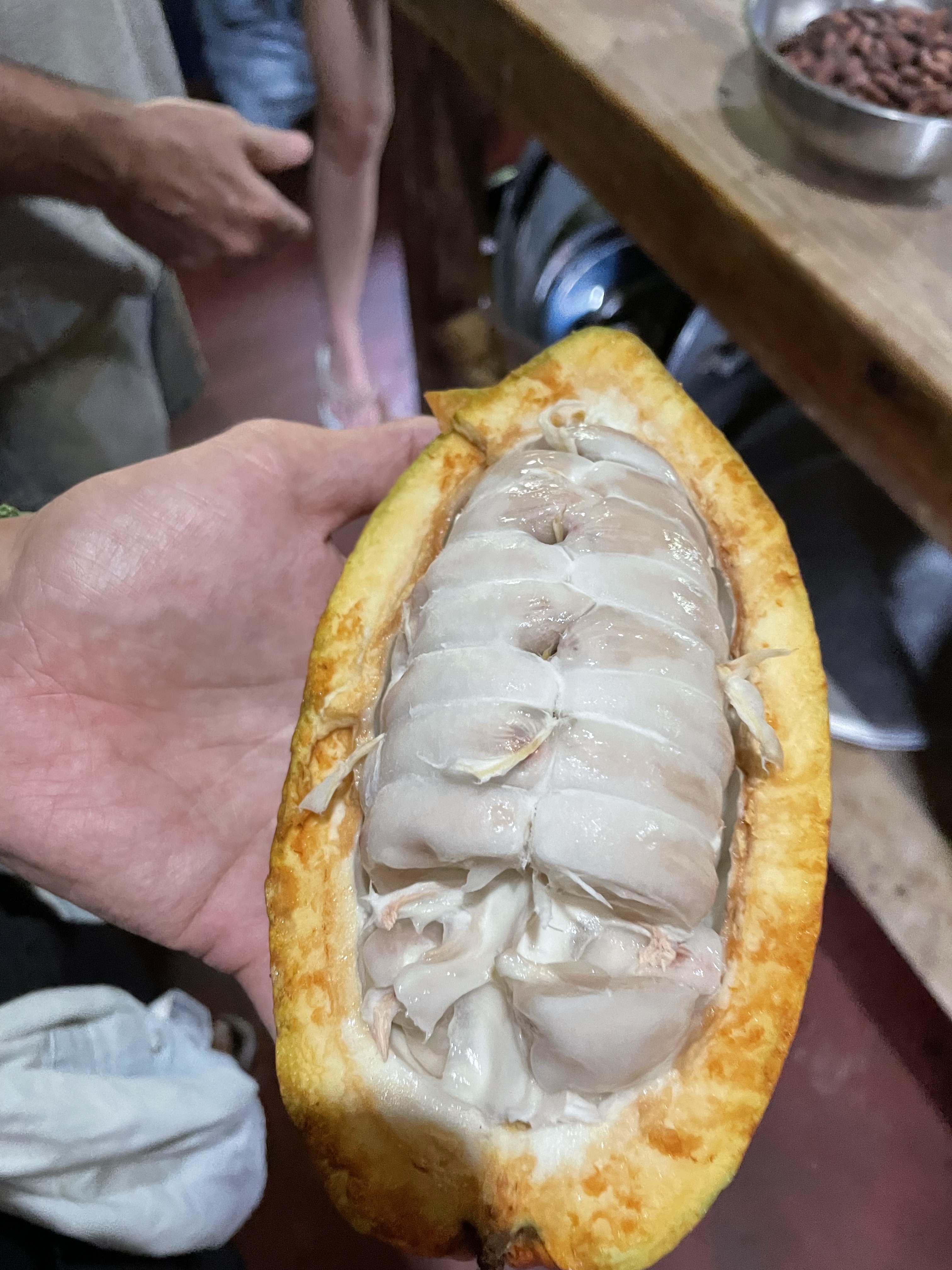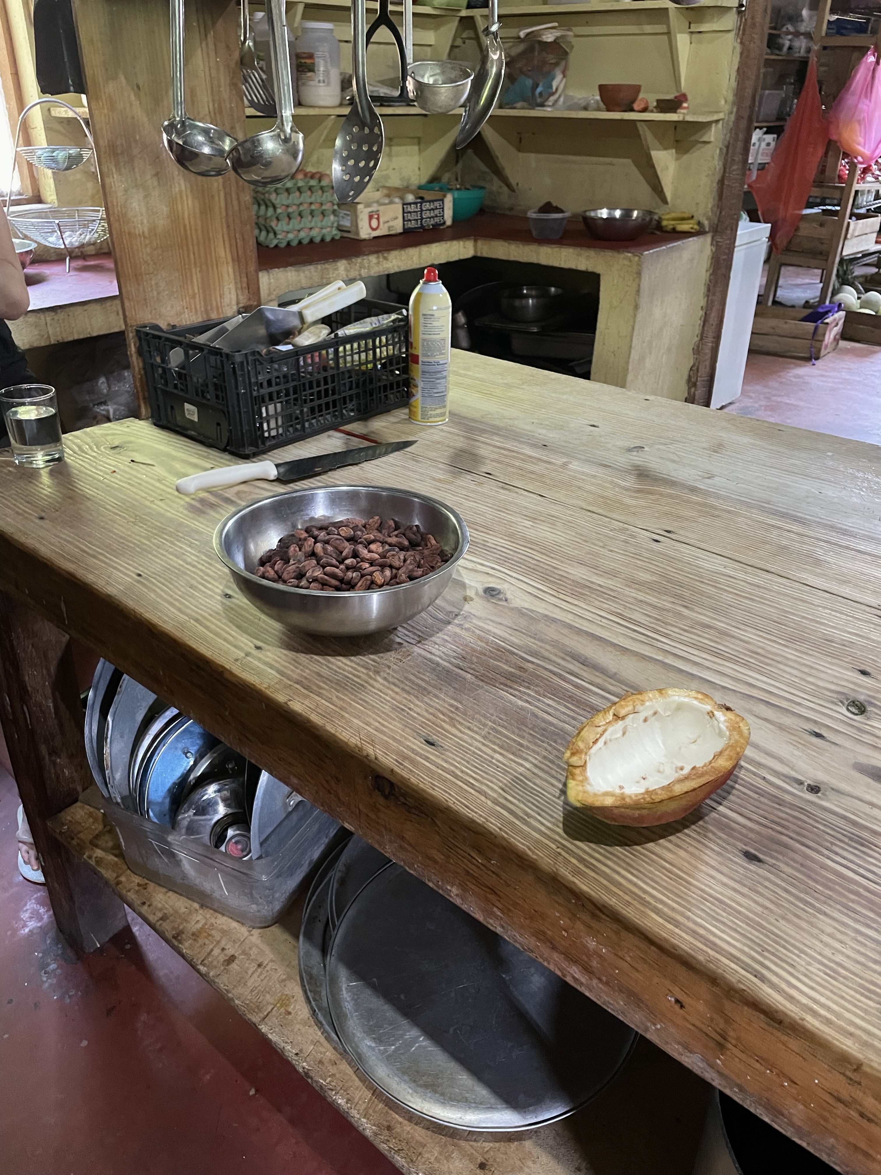 Ben ist auch wieder fit und direkt nach unserer Ankunft machen wir eine Kakao Tour durch den eigens angelegten Food Forest mit 20.000 Bäumen, der zum Hostel gehört. Wir lernen jede Menge über die Kakao Pflanze, ihre historische Bedeutung für die Maya und folgende Generationen sowie die (eigentlich ziemlich simple) Herstellung von Schokolade.