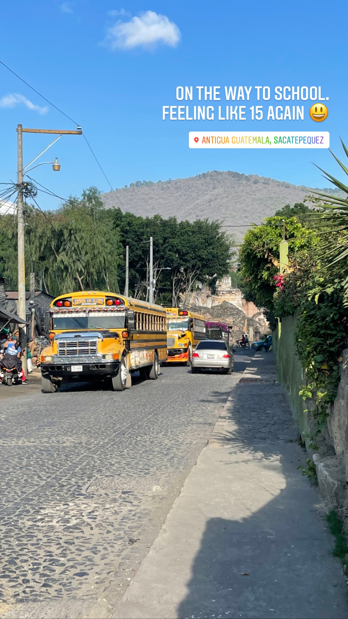 Sie wohnt mit ihrem Ehemann Manuel (beide um die 65 Jahre alt) im Haus der Schwiegereltern. Ihre Kinder sind schon lange aus dem Haus, dafür ist ihr Hund Sam zum Spielen da. Außer Ben und mir sind noch ein Pfarrer und seine Tochter aus Mississippi anwesend. Die zwei haben zur gleichen Zeit wie wir mit der Schule gestartet, hatten aber weniger Vorbereitungszeit. Ich bin ehrlicherweise ganz dankbar schon Anfang des Jahres angefangen zu haben via App ein wenig Spanisch zu lernen. Ich kann zwar nicht besonders viel sagen, aber ich habe immerhin schon einige Vokabeln drauf – die richtige Grammatik lernen wir jetzt in der Schule. Und die Kombi ist ziemlich gut, ich kenne einige Worte und muss jetzt eben noch lernen wie ich diese zu einem ordentlichen Satz zusammensetze.