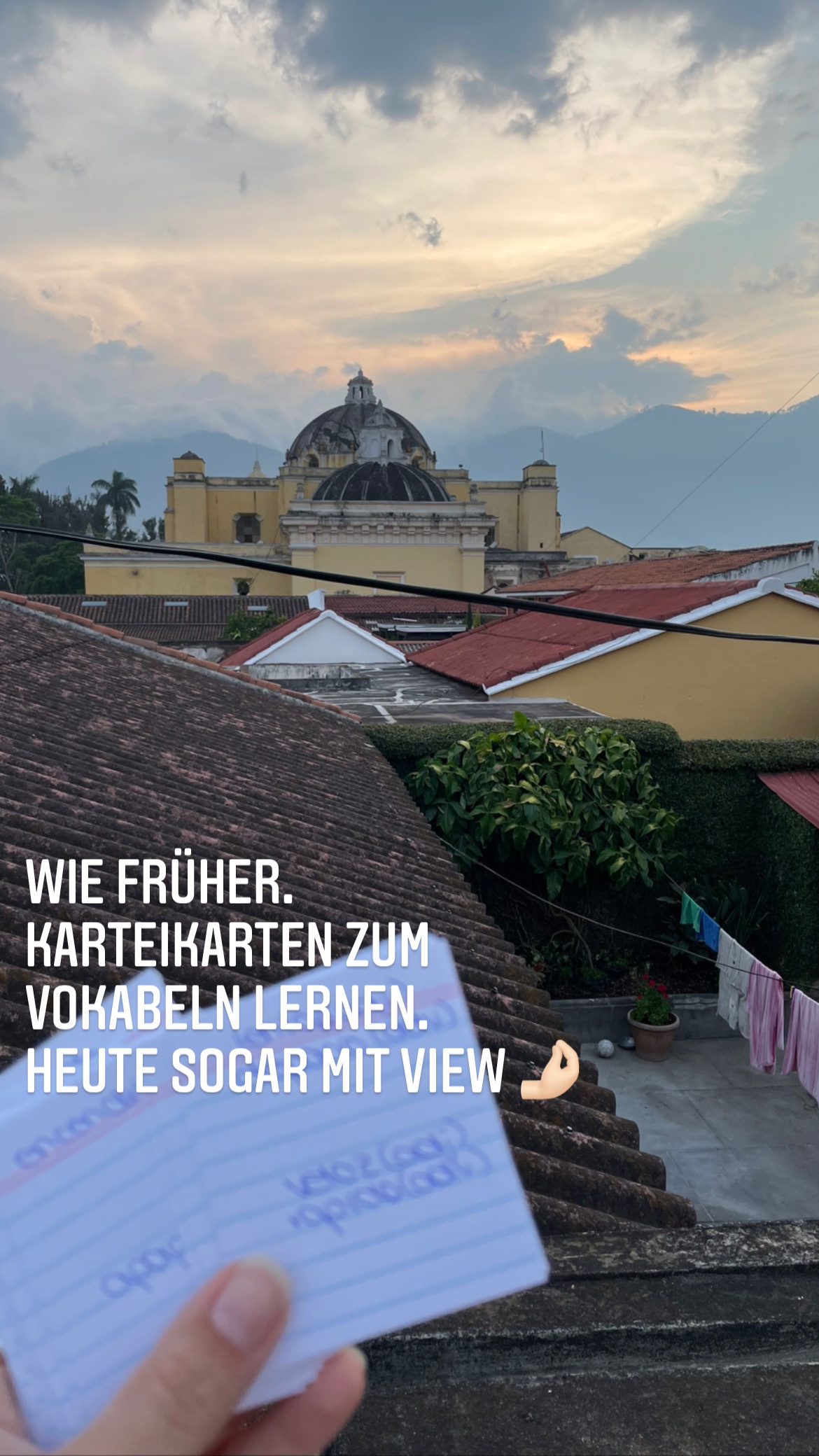 Dabei erzählt sie von ihrer Jugend, von Antigua, von ihren Eltern und von ihren Kindern. Ein bisschen Gossip über die Nachbarn ist auch dabei. Es macht Spaß, es ist einfach ein schöner Moment morgens. Außerdem verstehe ich jeden Tag mehr von dem was mir Ana-Luisa langsam auf spanisch erzählt. Ich antworte immer noch wie eine Dreijährige, aber immerhin mein Verständnis wird von Tag zu Tag besser.