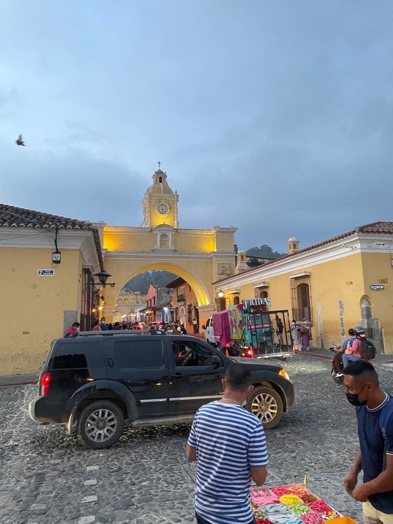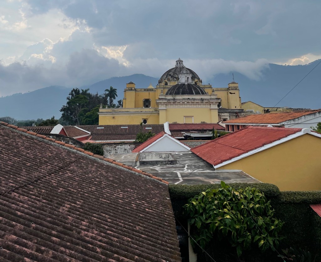 Noch bevor wir vollständig aus dem Bus gestiegen sind, ist es Liebe. Bunte Häuschen überall, schief und schepps gepflasterte Straßen. Es ist ein wirklich sehr schönes Städtchen. Kein Wunder gehört Antigua zum UNESCO Weltkulturerbe.
