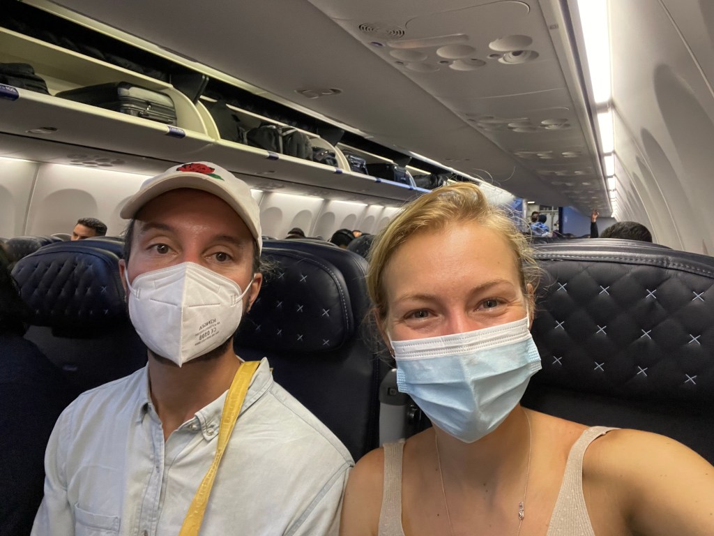 Wir sprinten nicht allzu lange, da stehen wir schon wieder still: in einer ewigen Schlange für die Sicherheitskontrolle. Es gibt genau ein Band. Warum?! Nach einer halben Stunde in der Schlange sind wir dran, passieren die Sicherheitskontrolle und rennen zum Gate, geschafft. Sogar kurz bevor das Boarding beginnt. So weit, so gut.
