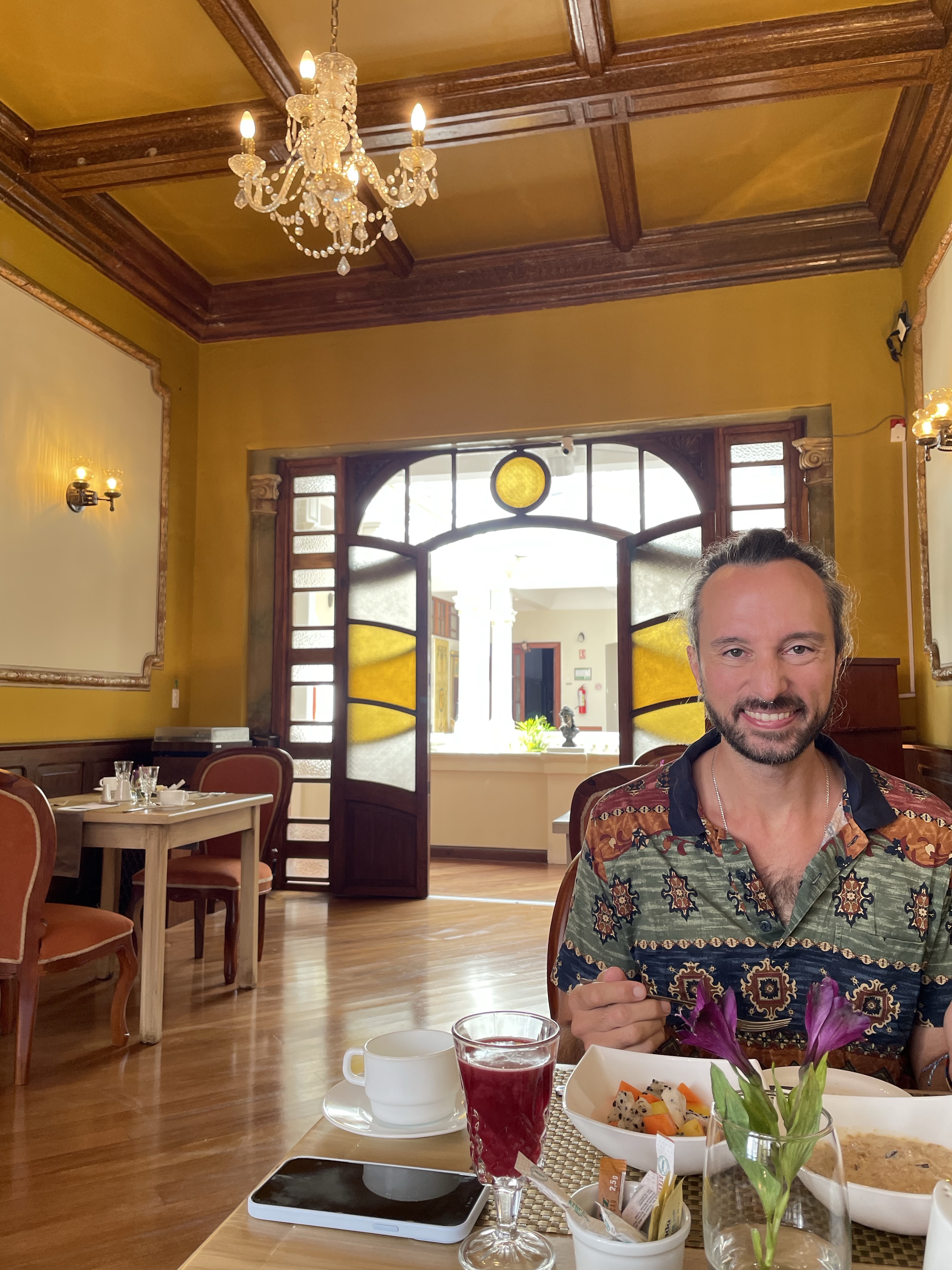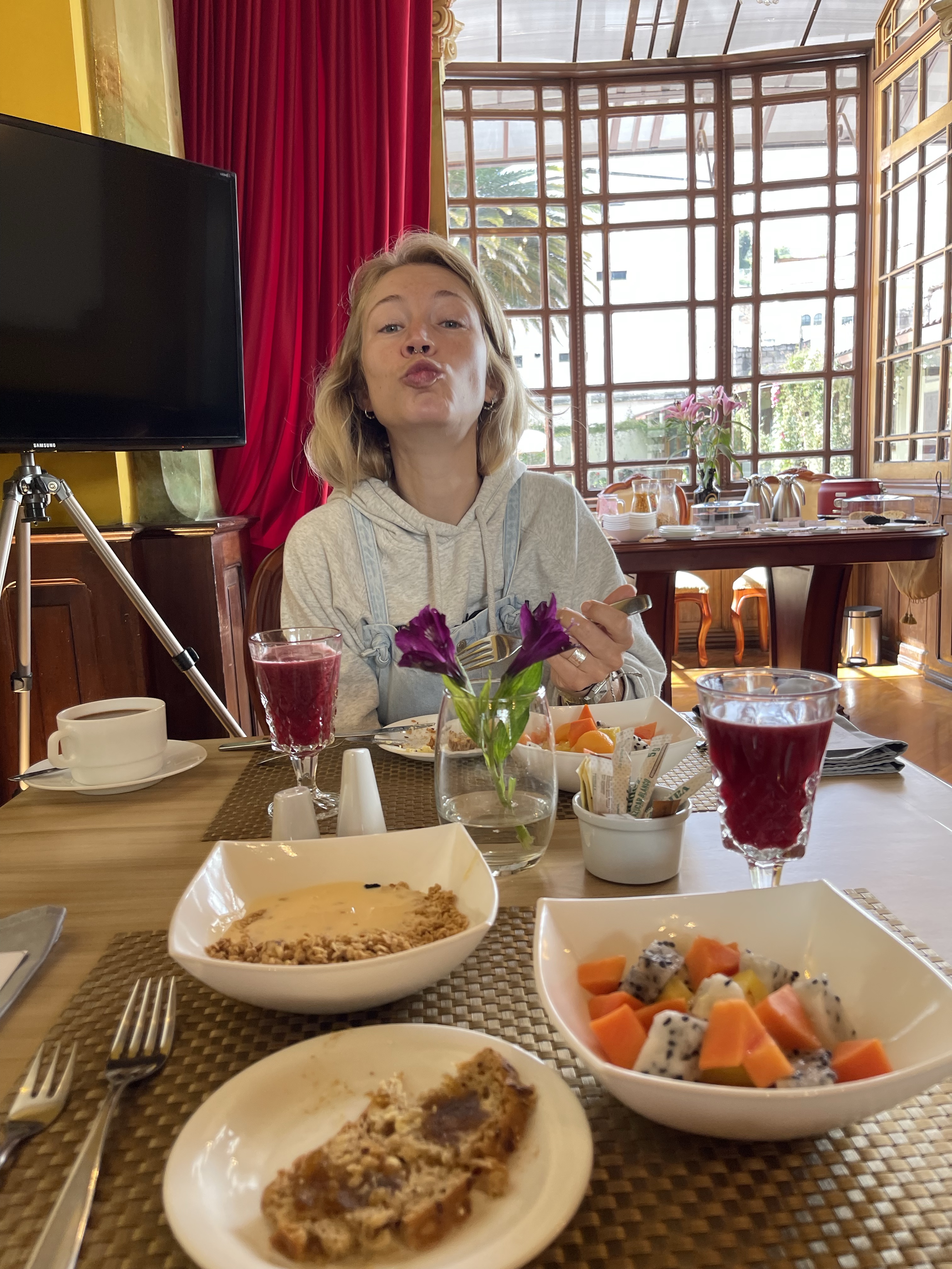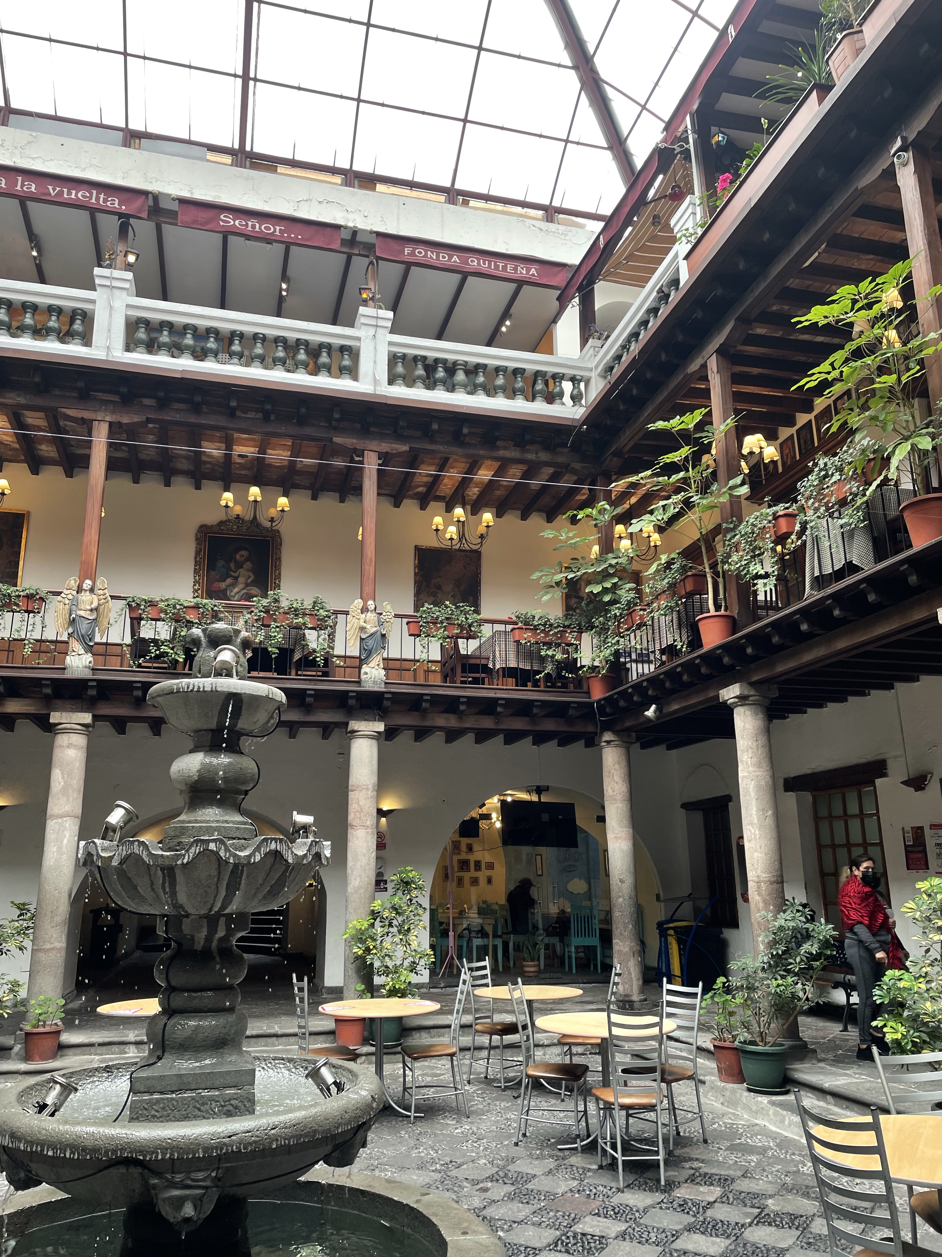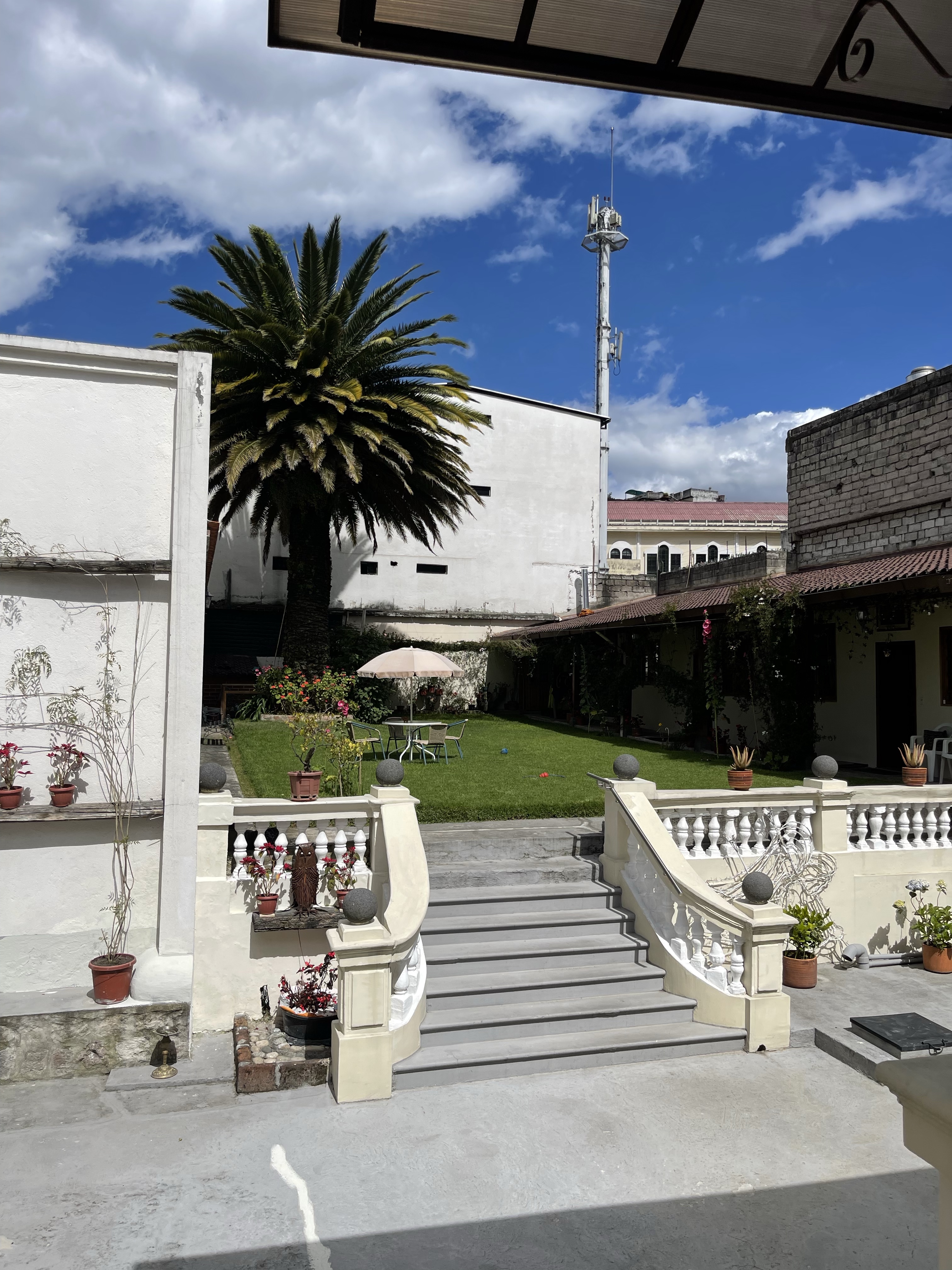 Im Hotel angekommen werden wir freundlich empfangen, man zeigt uns unser Zimmer. Quito liegt auf knapp 3.000m Höhe. Stuttgart gerade mal auf 300m. Das merke ich direkt wieder beim Treppen steigen. Wir müssen nur in den zweiten Stock, aber mein Herz schlägt schon wieder deutlich stärker als ich das von zuhause gewohnt bin.