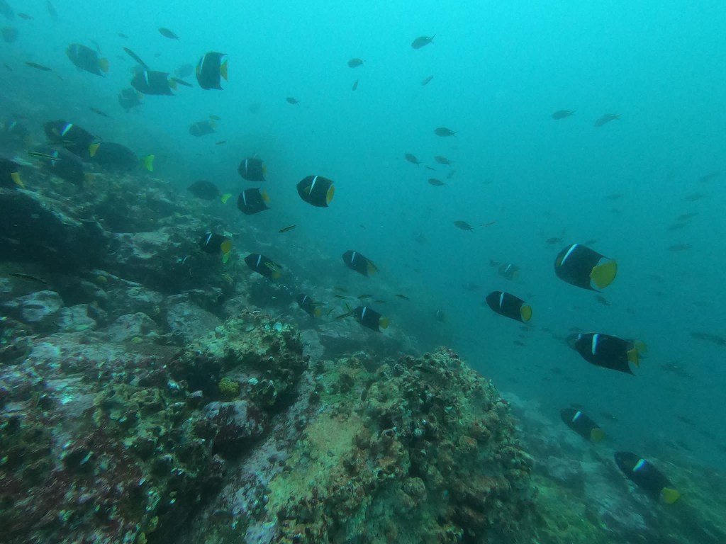 Nach der obligatorischen Pause über Wasser (der Stickstoff muss erst wieder aus dem Körper bevor wir erneut tauchen gehen), geht es nochmal rein ins kühle Nass. Diesmal an einer anderen Stelle, unser Guide meint er wüsste jetzt wo die Hammerhaischulen wären.
