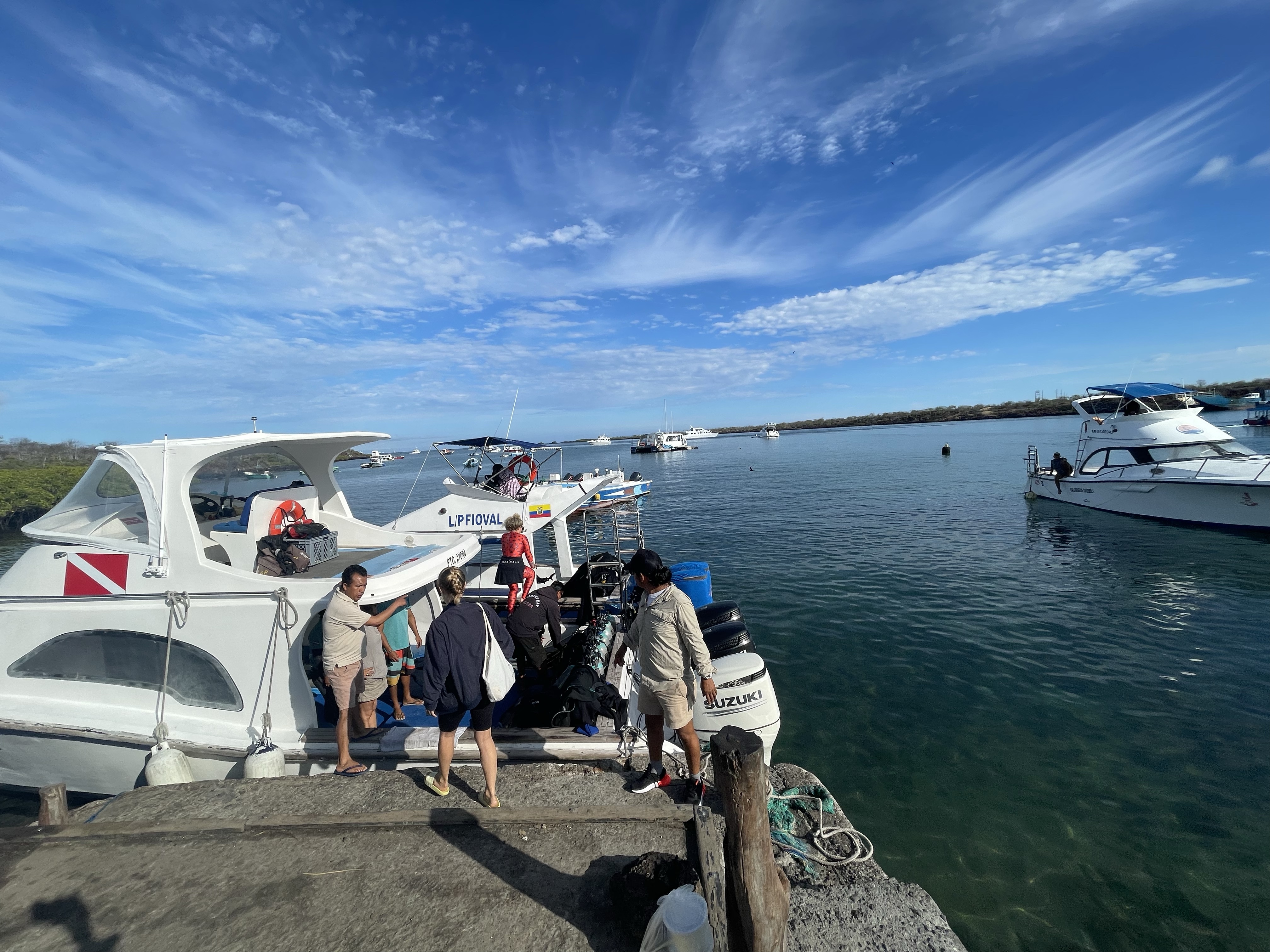 Nach unserem Dive muss es schnell gehen. Wir haben um 15 Uhr noch eine Fähre vom Festland zu bekommen, um auf die nächste Insel Isabela zu gelangen. Wir hatten tags zuvor mehrfach darauf hingewiesen und die Info bekommen, dass das locker reicht nach dem Tauchen rechtzeitig wieder in Puerto Ayora zu sein für die Fähre.