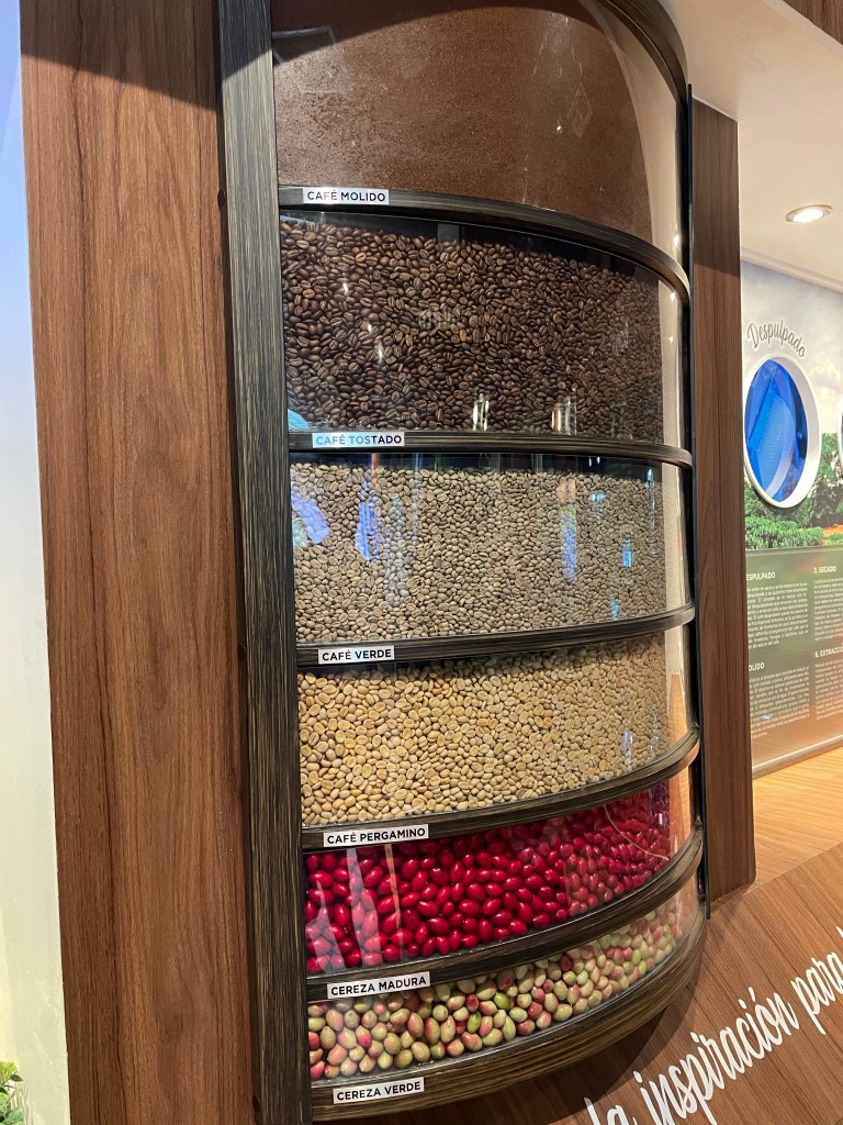 Wir besuchen außerdem noch ein Café Franchise: Sweet & Coffee. (Da waren wir am Tag davor in der Mall auch schon, der Kaffee war wirklich gut). Sweet & Coffee erinnert in seiner gesamten Aufmachung (und Häufigkeit im Stadtbild) ziemlich an Starbucks. Eventuell haben sie sich davon auch ein wenig inspirieren lassen. Aber: Sweet & Coffee arbeitet (fast) nur mit lokalen Produkten. Und ausschließlich mit ecuadorianischem Kaffee. Was kaum jemand weiß, Sweet & Coffee hat es geschafft Starbucks aus Ecuador zu verbannen (ja, verbannen): Starbucks ist im heutigen Ecuador nicht erlaubt.