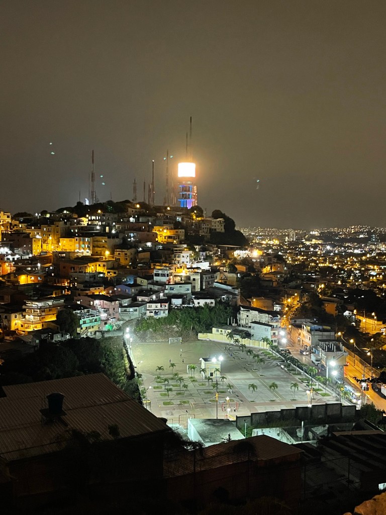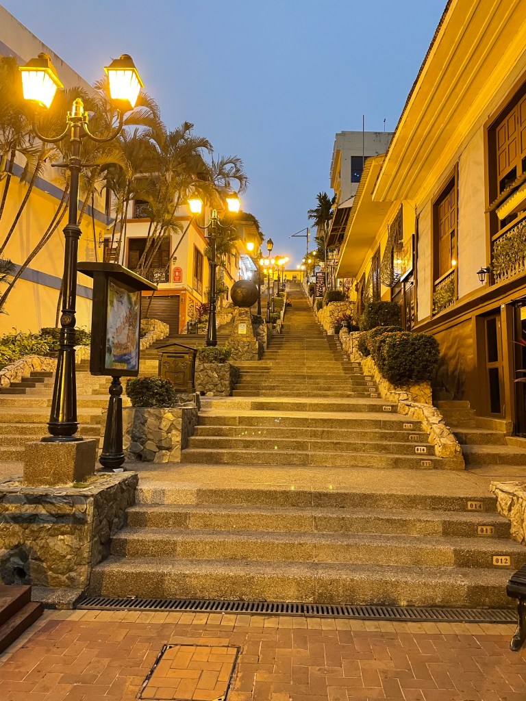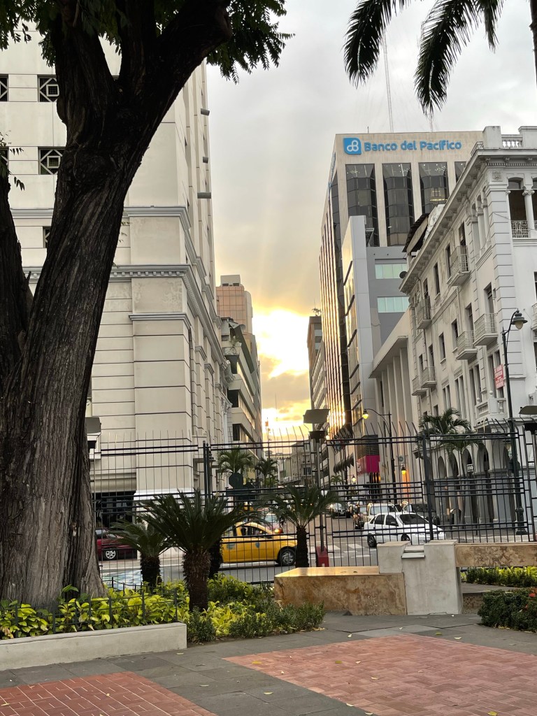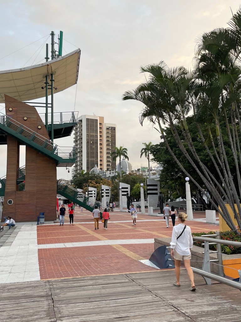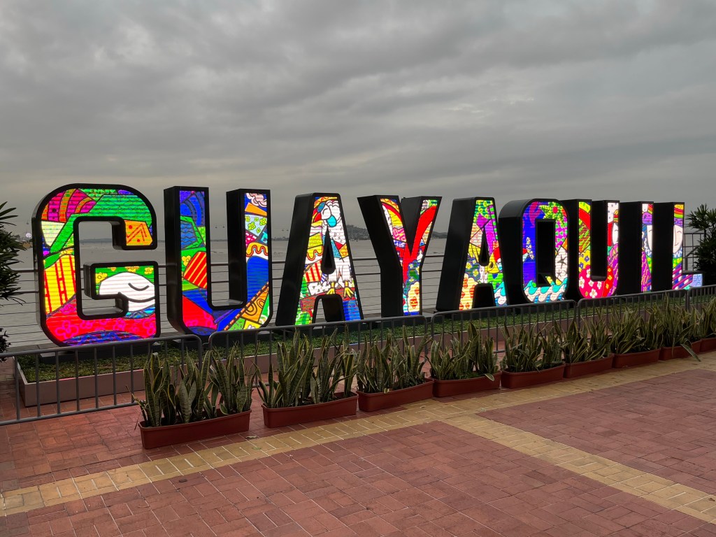 Als wir auf den Galápagos Inseln in den Flieger steigen, tut der Abschied weh. Aber wir sind auch gespannt, was in Guayaquil auf uns wartet. Kaum angekommen sind wir direkt wieder im City Vibe. Aber es ist eigentlich auch ganz schön, wieder ein paar mehr Menschen und Straßen und Getümmel zu sehen. Wir nehmen uns ein Taxi und fahren erstmal ins Hostel für die nächsten 4 Nächte.