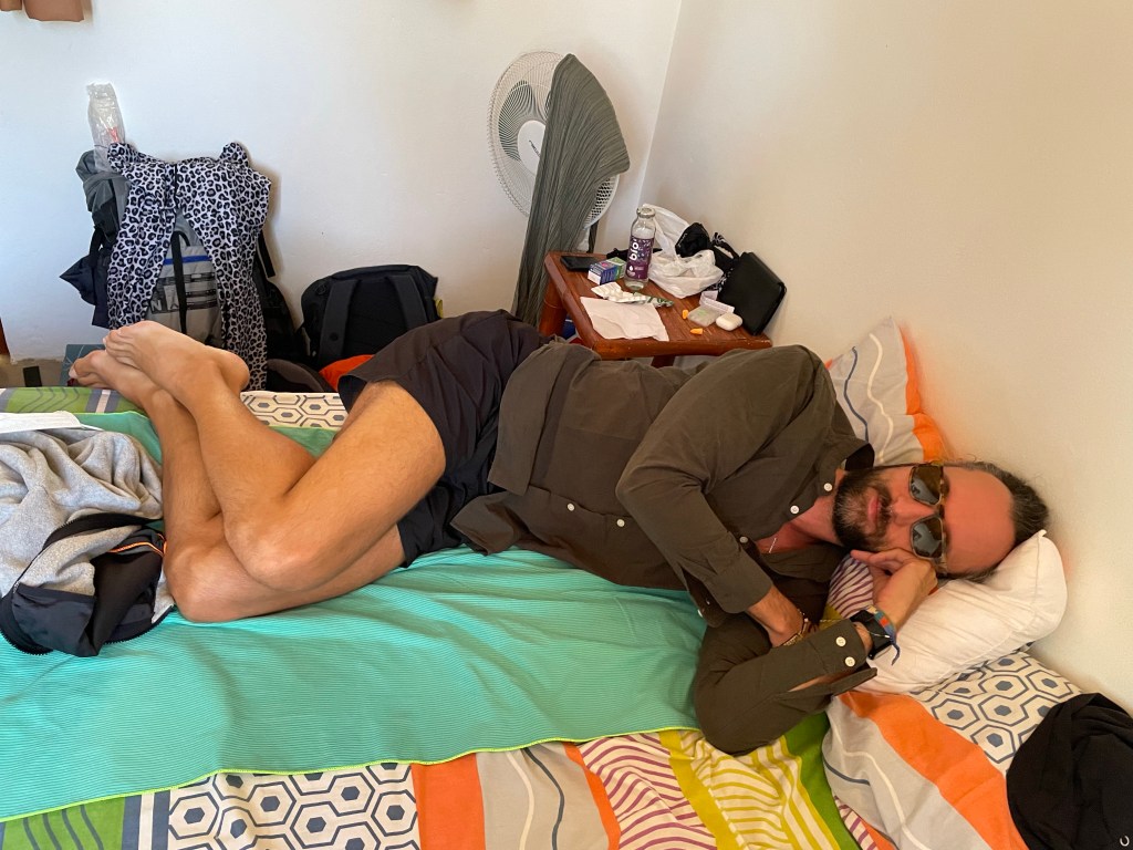 Im ersten wechseln die Gäste, im zweiten sind Josh (USA) und Kathrin (Peru). Die zwei reisen gerade eine Weile gemeinsam und arbeiten währenddessen remote. Im Zimmer dahinter wohnt Irina (Russland), sie ist selbstständige Buchhalterin und reist so schon seit einigen Jahren durch die Welt. Dann kommt unser Zimmer und dahinter beginnt der Privatbereich von unserem Gastgeber, der wohnt nämlich auch vor Ort.
