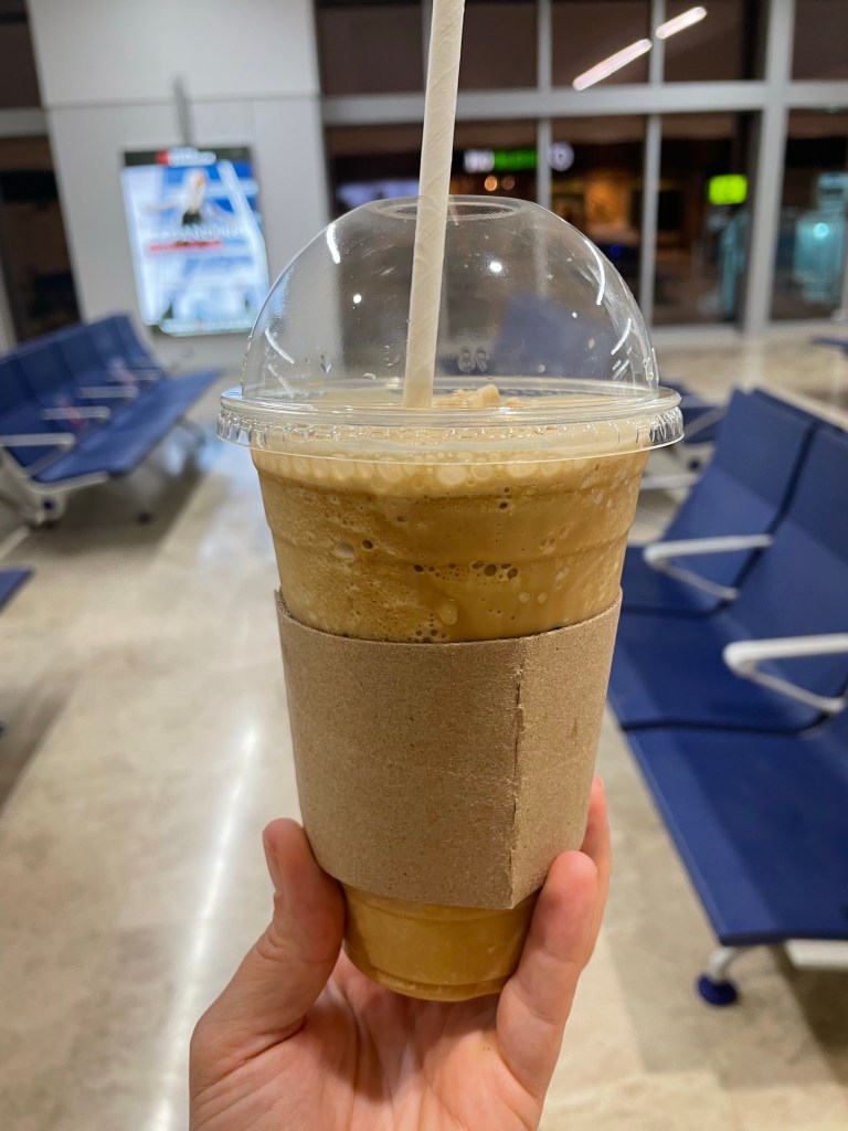 Ich bleibe zwar bei Tomatensaft und Kaffee, es ist aber trotzdem auf seltsame Art und Weise schön zu wissen, dass wir auch Bombay Gin oder original Jägermeister bekommen hätten ohne Aufpreis. Da fühlt man sich gleich ein bisschen teurer. Ben versucht immerhin den Weißwein.