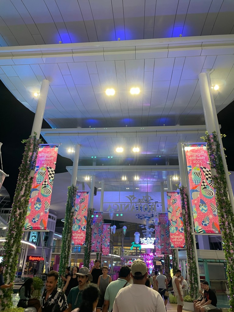 Die Insel ist voller Menschen, laut, richtig was los. Und je näher wir dem Strand kommen, desto voller wird es. Kurz vor Mitternacht landen wir in einer Partystraße, die direkt auf den Strand führt. Bars links und rechts ohne Ende, viele leicht bekleidete Frauen und besoffene Touristen (vor allem männliche) all around. So weit, so schrecklich.