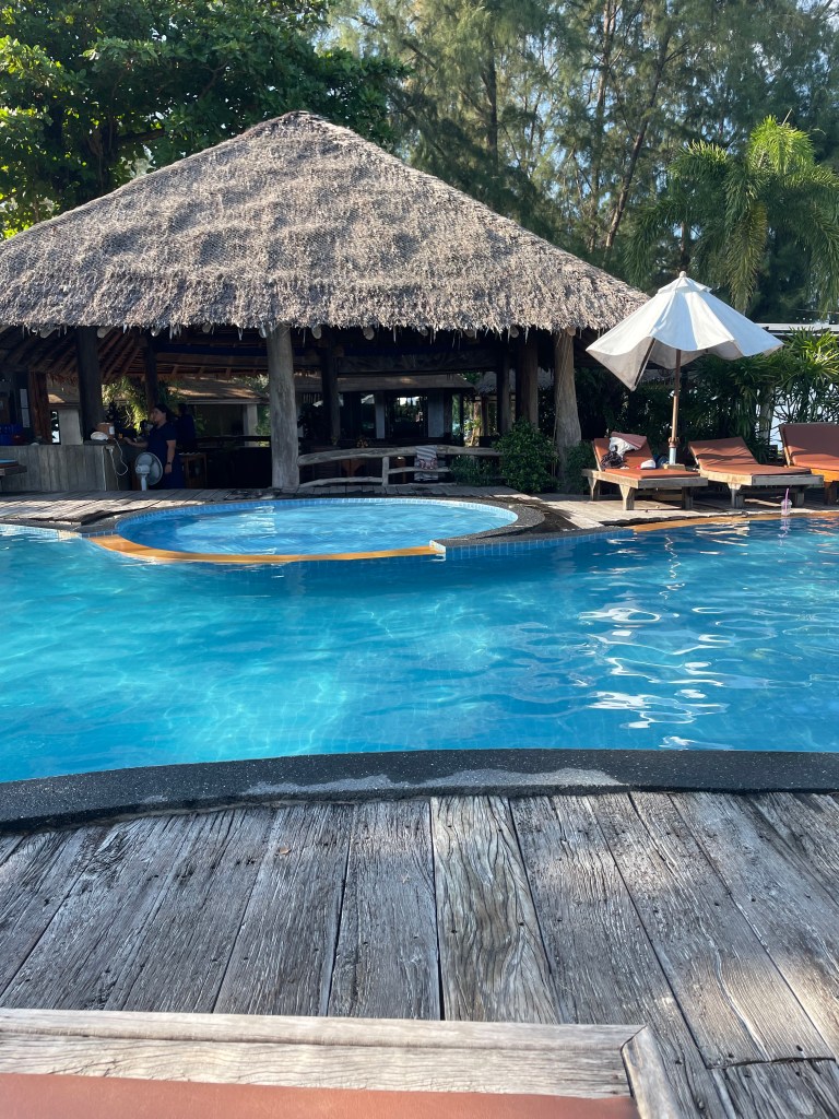 Let me just say, die Ersatzunterkunft ist kein Ersatz, sondern ein ordentliches Upgrade: 3 Sterne Resort (und damit drei Sterne über unserer eigentlichen Unterkunft) direkt am Strand, mit Pools und Bar und Restaurant und allem, was man sich von einem Resort eben so verspricht.