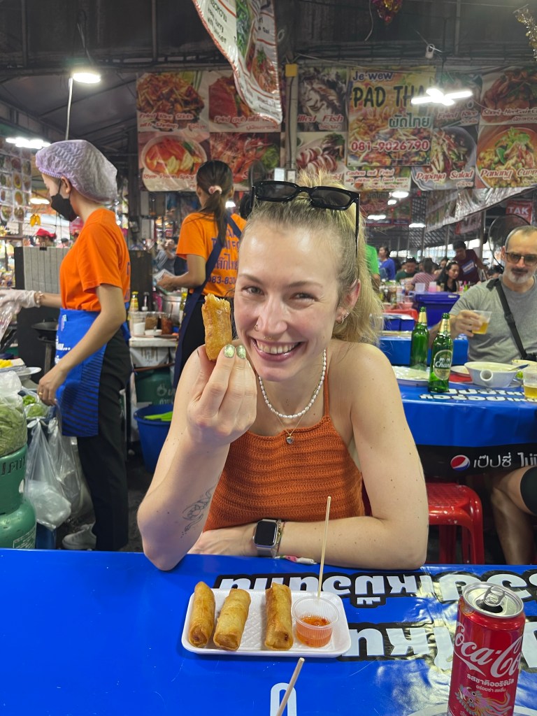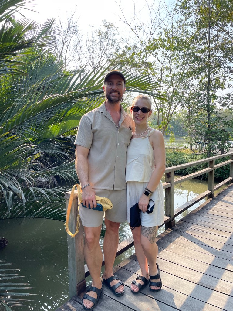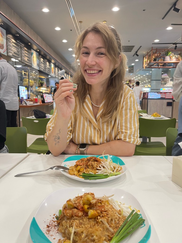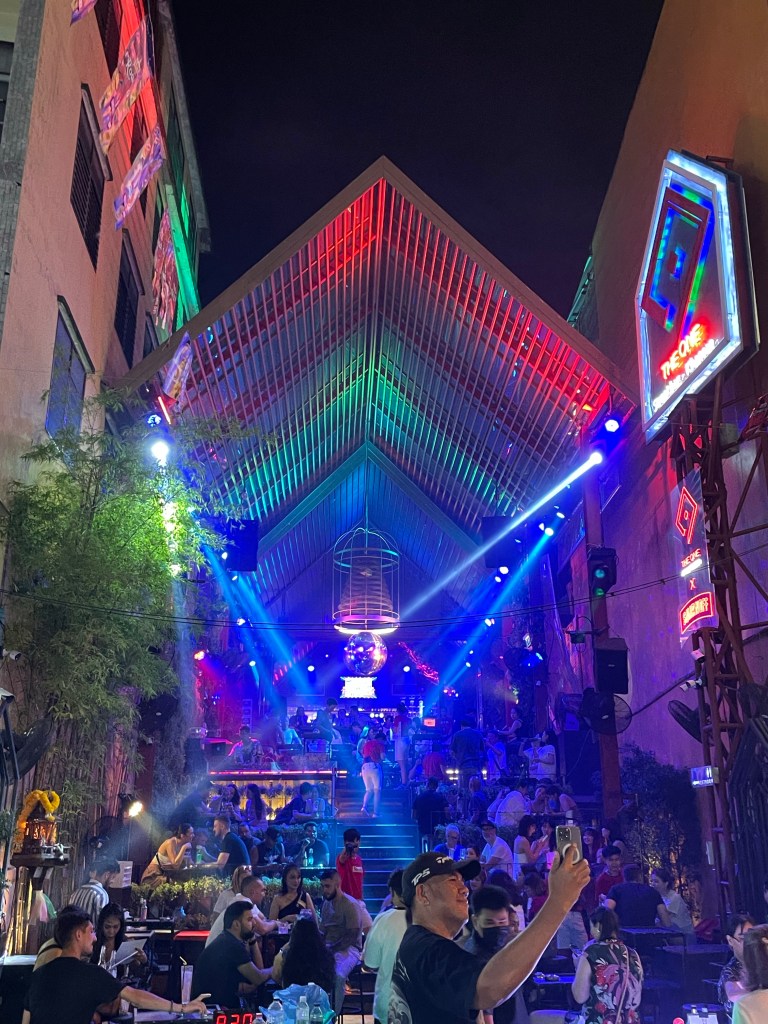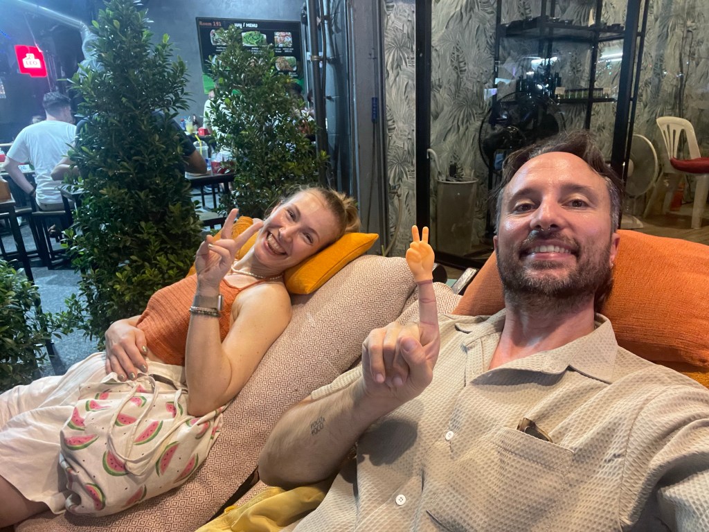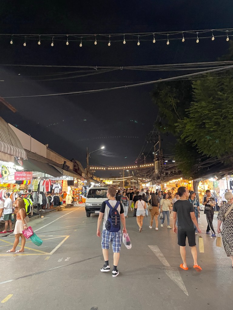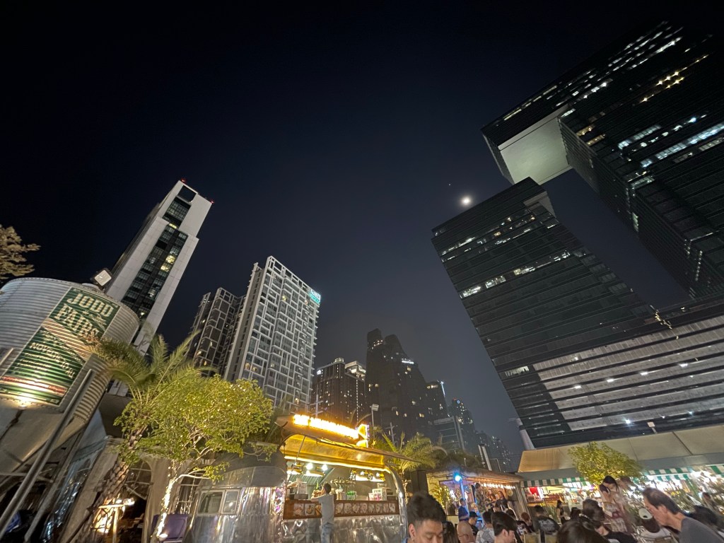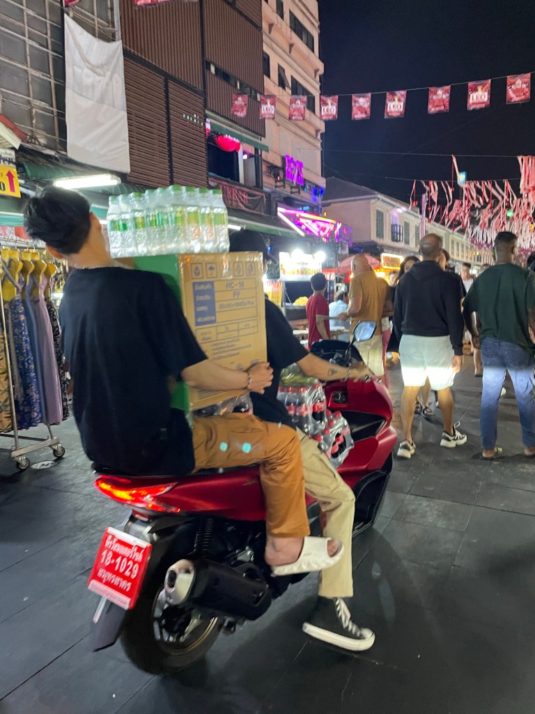 Nachdem die Rucksäcke abgelegt sind, gehen wir nach dem Tag im Bus erstmal eine Runde spazieren, die Füße vertreten und unsere neue Hood Din Daeng auskundschaften. Das Viertel ist ähnlich wie die Unterkunft: ganz ok, aber nicht sexy. Großes Highlight des Abends ist das Hot Pot Lokal genau gegenüber des Hotels, da gibt’s einen Hot Pot für Ben und für mich spicy salads. Wer mich kennt, weiß, wie sehr ich scharfes Essen liebe. Und ich bin -vermutlich weil ganz schön groggy- so mutig und bestelle mir in Thailand in einem local Restaurant (kein Touristen Spot) scharfes Essen… Es schmeckt großartig, aber ich vergieße so einige Tränen beim Essen, mein Mund fühlt sich an wie die Hölle höchstpersönlich und ich übe Resilienz auf höchstem Niveau, weil ich das Wasser vor mir natürlich gerne trinken möchte und es dennoch nicht tue.