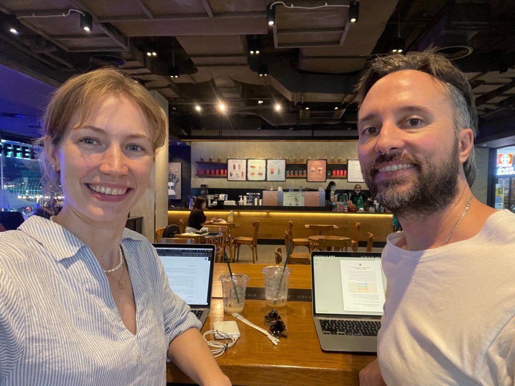 Stattdessen entscheiden wir uns dazu, wie viele andere hier, in den Starbucks Filialen zu arbeiten. Der Kaffee ist zwar deutlich teurer als überall sonst, aber lecker, die Internetverbindung ist stabil und die Atmosphäre sehr gut. Zuhause meide ich Starbucks, aber hier finde ich es überraschenderweise ganz angenehm – jedenfalls zum Arbeiten. Das werde ich zuhause vielleicht auch mal testen, so als externes Büro.