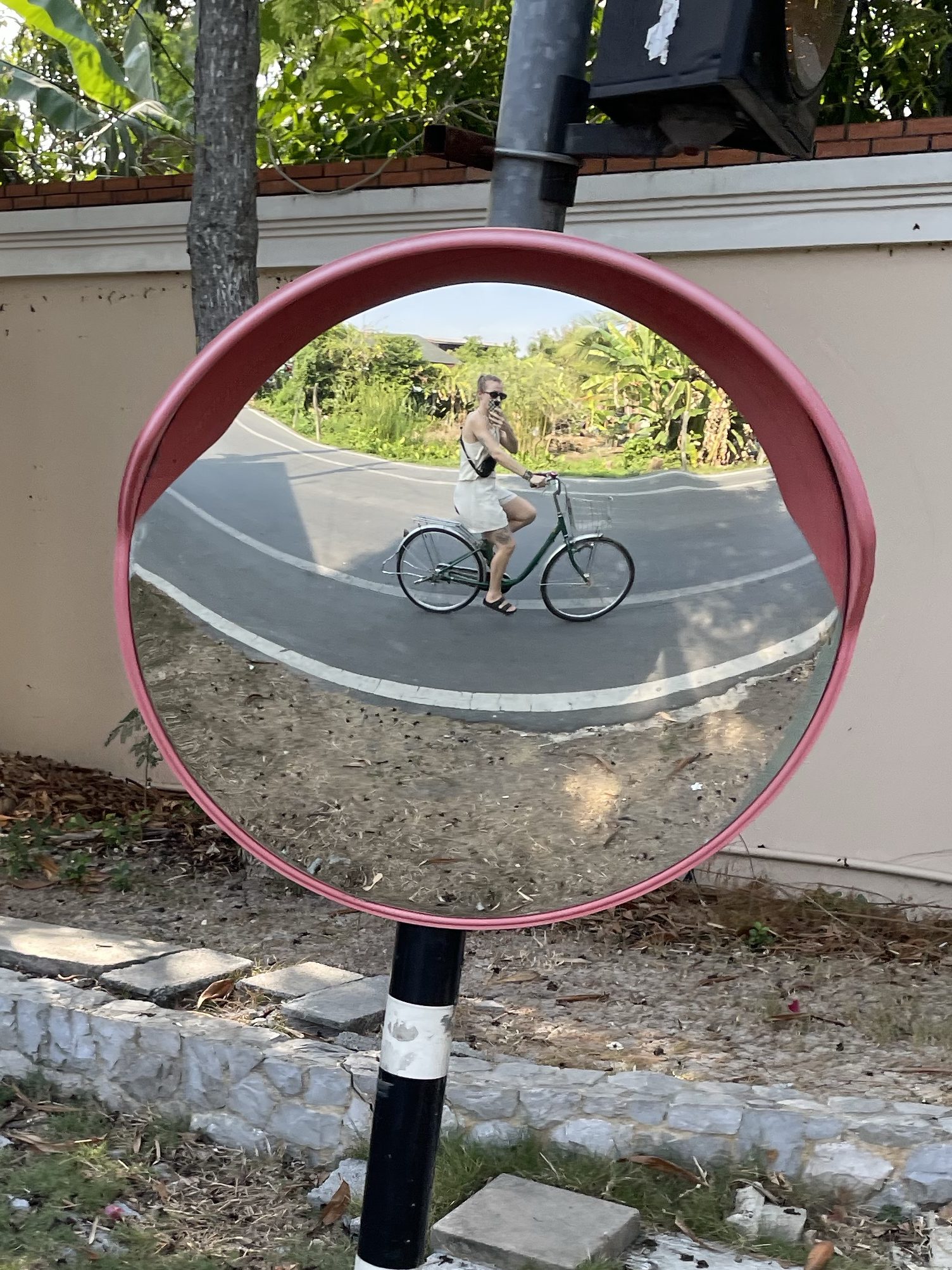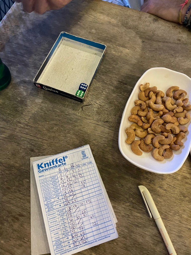Danach geht es zurück zum Fahrradverleih und über den Fluss. Diesmal gibt’s es aber keine Fähre zurück, bei der man einen halben Meter über dem Wasser schwebt, sondern eine Nussschale nur für Ben und mich, bei der man eher 20 cm unter dem Wasserspiegel sitzt. Der Seebär mit den rauen Händen macht eine Handbewegung zu uns, die man zuhause eher mit „geh weg“ interpretieren würde – hier heißt das wohl, „komm her und bring das Geld mit“.