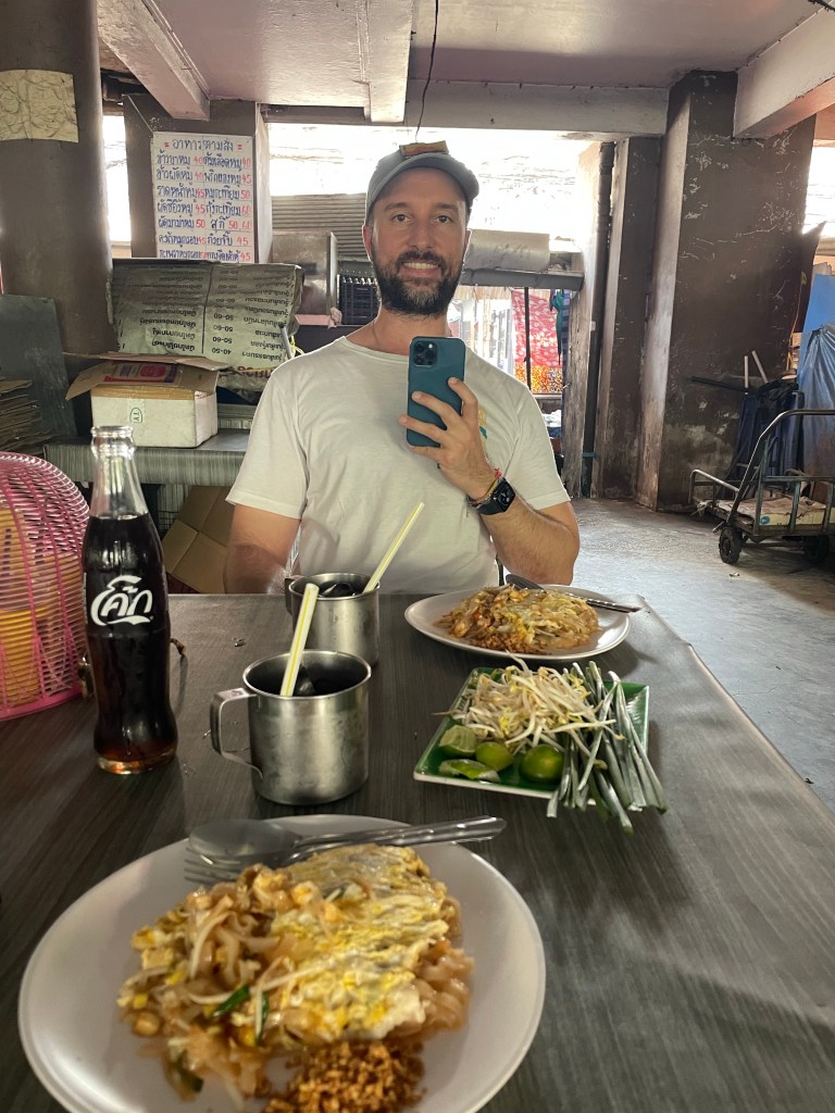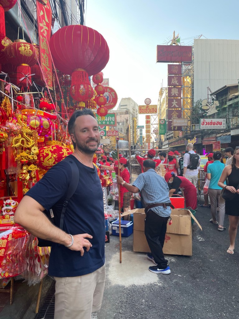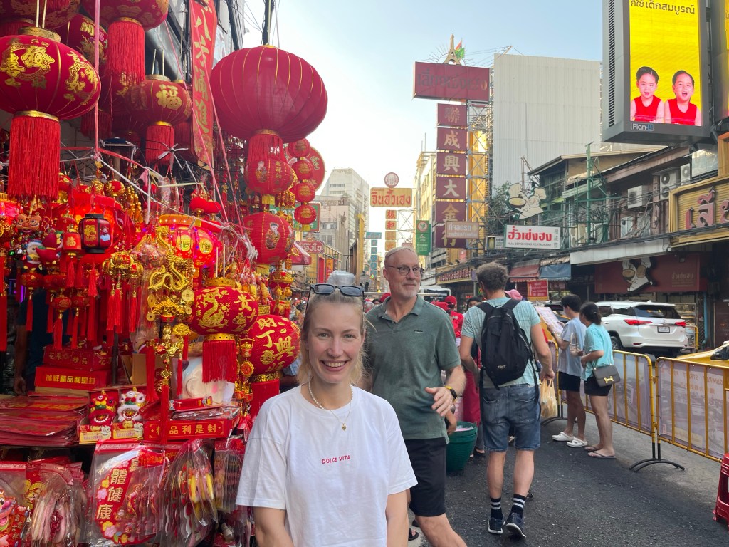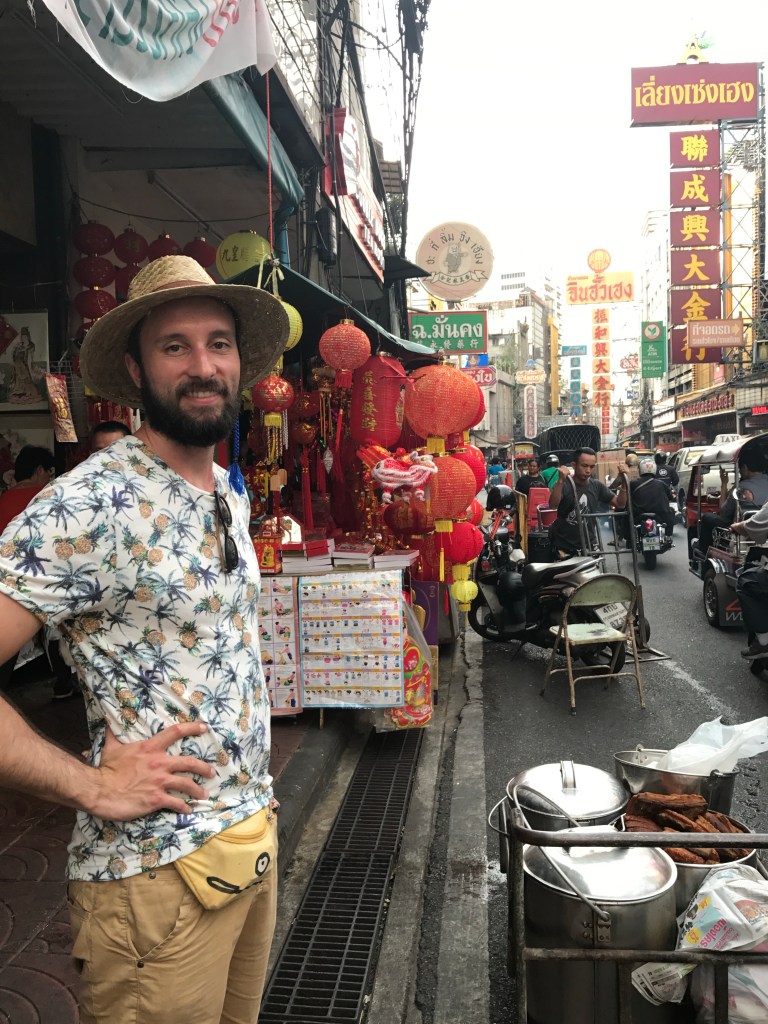 Einen Nachmittag sind wir in Chinatown unterwegs und haben sogar den exakt selben Spot gefunden, an dem wir vor über 6 Jahren ein Foto gemacht haben. Auf dem Heimweg machen wir noch eine Fährfahrt zum Sonnenuntergang auf dem Chao Praya, leider haben wir davon weniger gesehen als erhofft :‘-) Dafür geht’s noch auf den Jodd Night Market zum Abendessen und wir schauen beim Schneider vorbei, Ben hat sich hier zwei Anzüge anfertigen lassen und ich eine Hose, das wird jetzt anprobiert. Sitzt 1a.