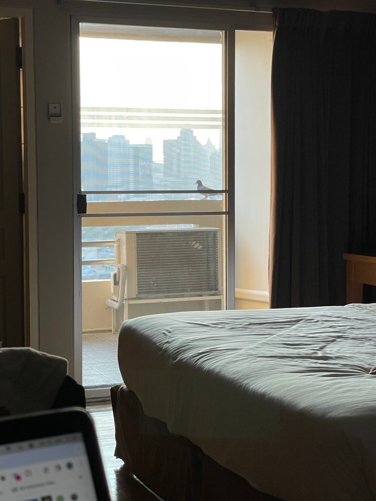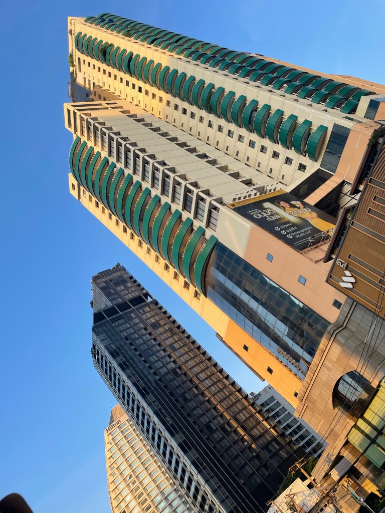 Am nächsten Morgen um 7.30 Uhr ist Abfahrt nach Bangkok, gegen 18.30 Uhr sind wir schlussendlich auch in unserem Hotel. Der erste Eindruck ist gemischt, das Studio ist ok aber weit nicht so schön wie auf den Fotos, nicht so 100%ig sauber und es müffelt ein wenig. Gut, dass wir schon eine volle Woche im Voraus gebucht haben 😄 Dafür ist die View aus dem 16. Stock umwerfend und wir sind trotzdem schockverliebt in die Stadt.