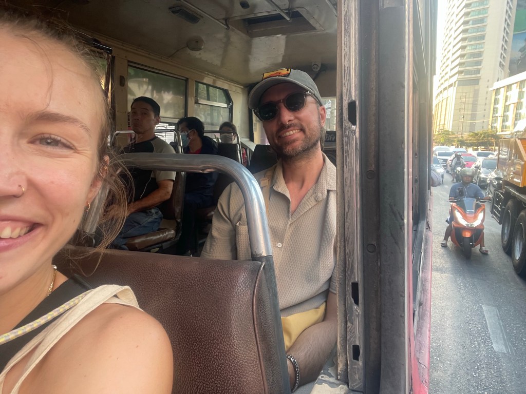 Von Ko Yao Yai werden wir morgens abgeholt, mit der Fähre ans Festland geschippert und von dort geht es in zwei unterschiedlichen Bussen bis nach Surat Thani, dort kommen wir am Nachmittag an. Erst am nächsten Morgen geht es mit dem Langstreckenbus von Surat Thani bis nach Bangkok, die Fahrt dauert nämlich rund 9-10 Stunden.