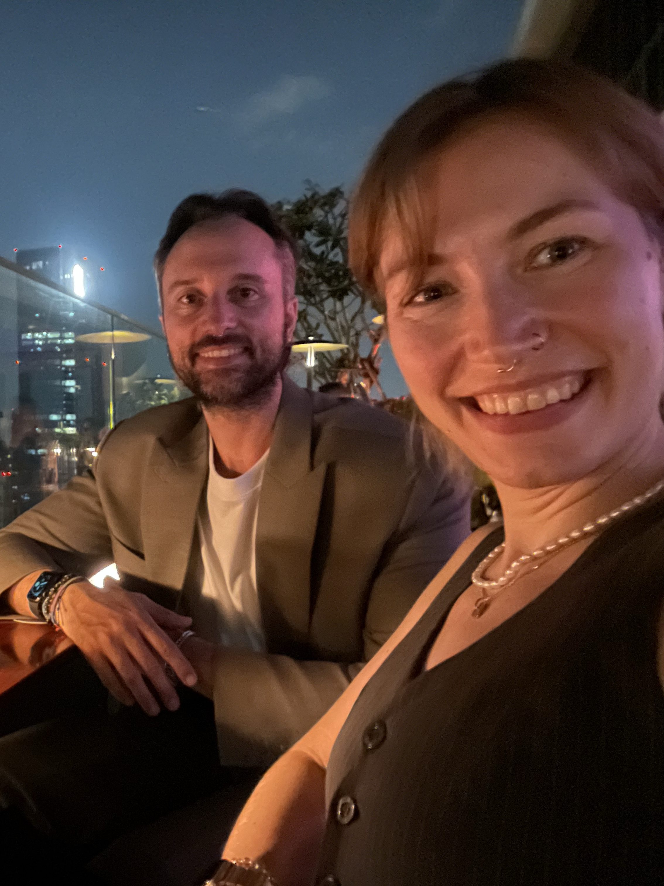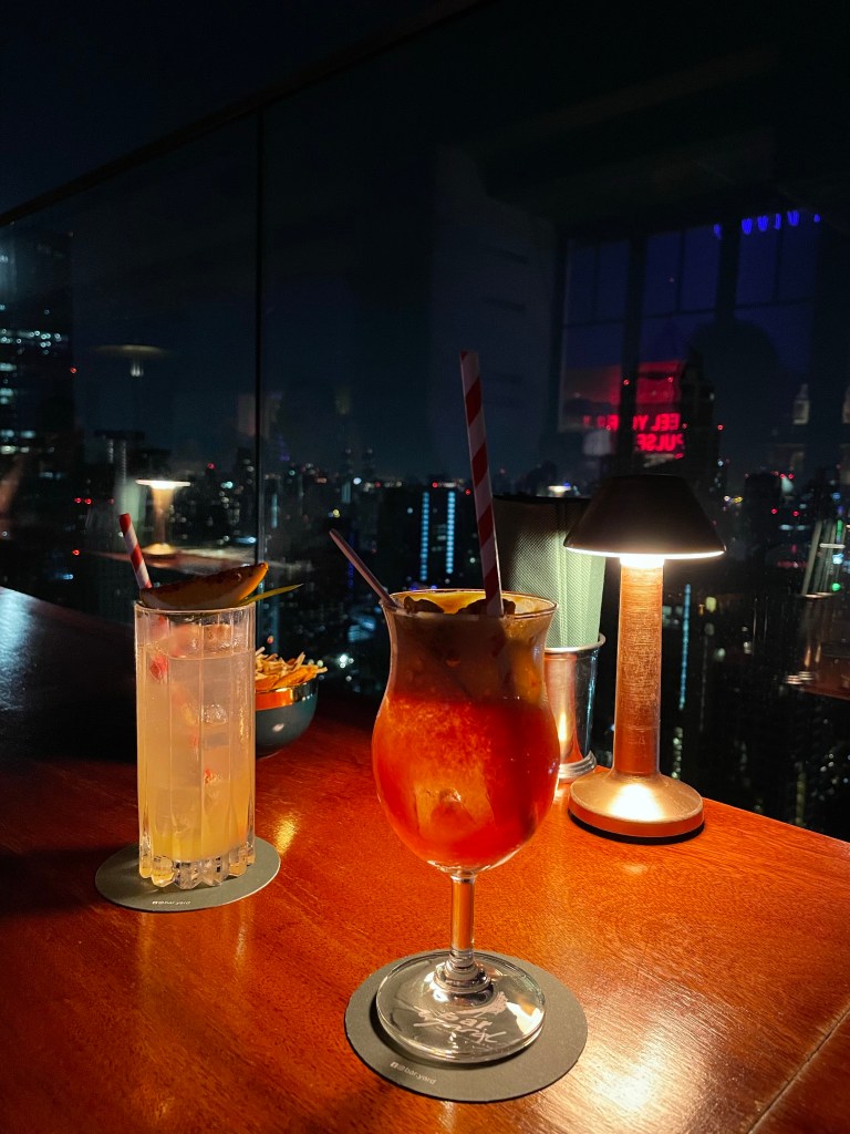 Den letzten Abend in Bangkok besuchen wir in unseren schicken, maßgeschneiderten Teilen noch eine fancy Cocktailbar im 43. Stock. Die Aussicht ist traumhaft und passt perfekt, um sich von dieser vollen, lauten, hochgebauten und chaotischen Stadt zu verabschieden.