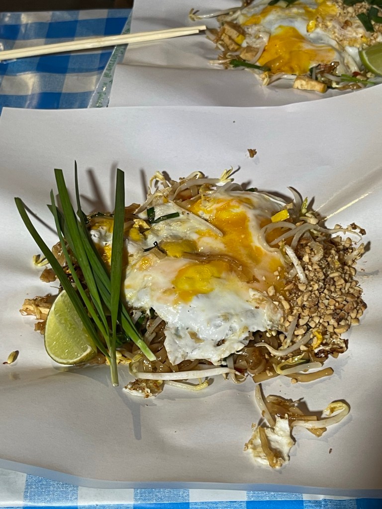 Abends drauf landen wir dafür bei einem älteren Ehepärchen im „Wohnzimmer“. Jedenfalls stehen die drei Tische direkt angrenzend zu einem Raum, der wie das Wohnzimmer der beiden aussieht. Die zwei sind wirklich goldig und während er ein weltklasse Pad Thai zubereitet, unterhält sie sich ziemlich gut auf Englisch mit uns. Ungewöhnlich, denn in Chiang Rai spricht kaum jemand englisch, auch nicht die jüngeren Leute. Für eine alte Dame daher sehr überraschend. Aber wir freuen uns natürlich, uns ein bisschen unterhalten zu können.