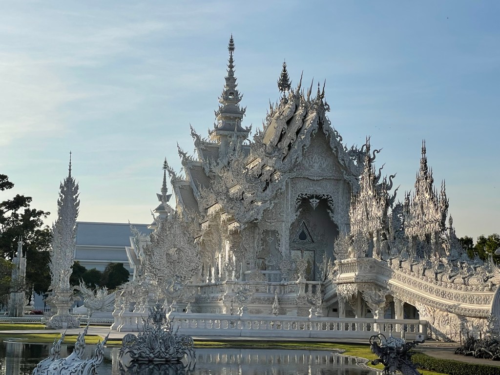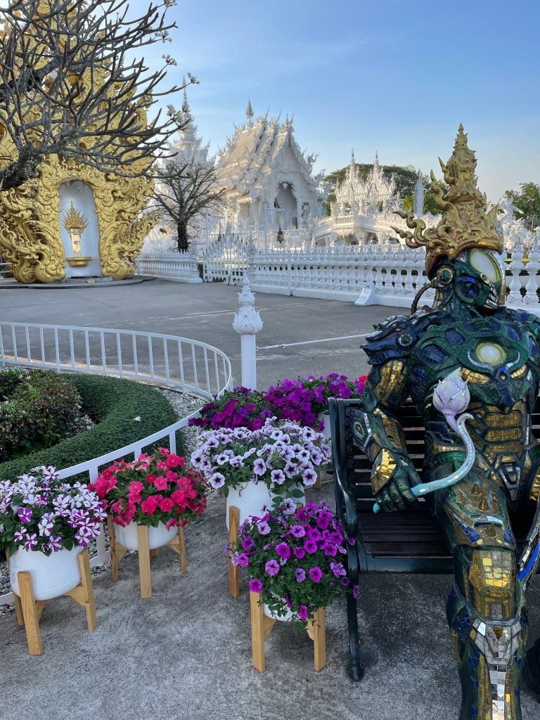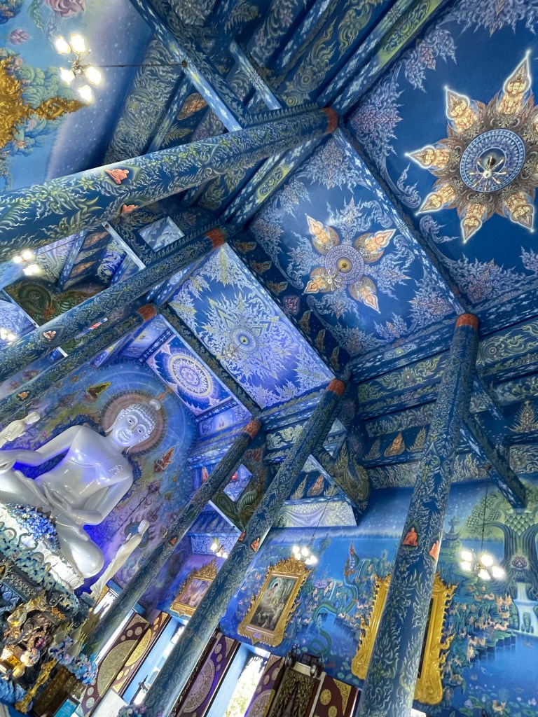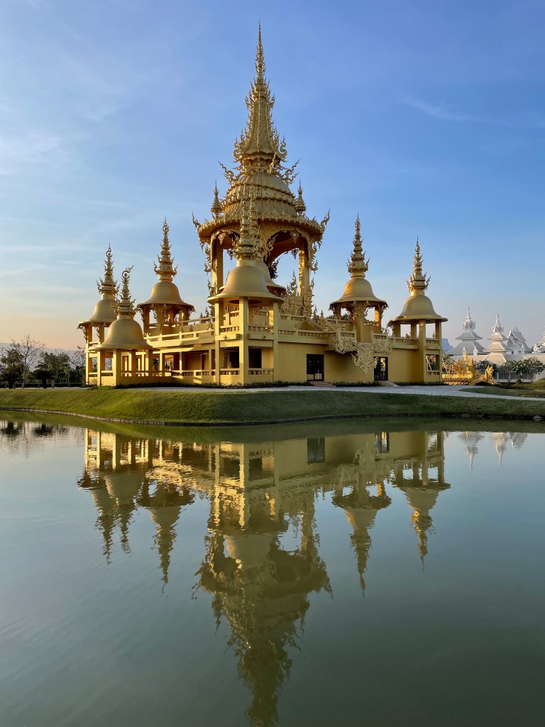 Der blaue Tempel ist noch einigermaßen tempelartig, wenn auch sehr touristisch. Der weiße und goldene Tempel sind aber irgendwie richtiger Quatsch – erstens kosten die Eintritt (unüblich für Tempel), außerdem sind um die Tempel herum Totenköpfe, Aliens und andere abartige Figuren gebaut. Es wirkt jedenfalls mehr wie Europa Park denn Gebetsstätte. Ganz nett zum Anschauen sind die Tempel, aber Ehrfurcht ob der Macht des Glaubens überkommt einen nicht dabei.