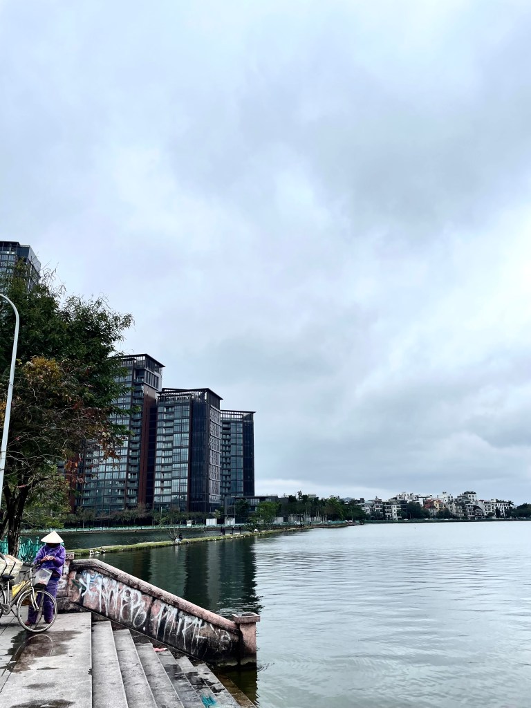 Tag 2 in Vietnam ist ein Sonntag und den verbringen wir auch wie einen: erstmal ausschlafen und dann losstiefeln. Wir spazieren um den Westlake, den größten See der Hauptstadt und lassen die Stadt auf uns wirken. Es ist kalt, neblig, bewölkt und an manchen Stellen kann man den See nicht vom Horizont unterscheiden. Macht aber gar nichts, der Kontrast im Wetter macht nur noch etwas deutlicher, dass wir in einem neuen Land angekommen sind.