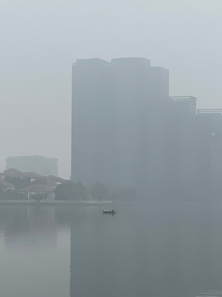 An einem besonders nebligen Tag (in Hanoi ist es immer neblig, sogar an sonnigen Tagen, haben wir keinen Himmel gesehen) mit 3 Shirts und 2 Jacken übereinander trotz angesagter 30 Grad, beschließen wir also die neue Route.
