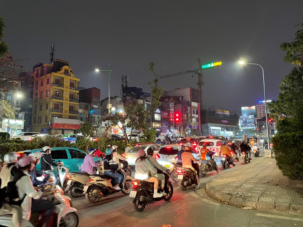 Der Verkehr in ganz Hanoi war schon jenseits von geisteskrank, aber am extremsten war es in der Altstadt. Noch NIE habe ich so viele Roller, Autos, Fahrräder und Fußgänger so wahllos (und doch funktionierend) durcheinander fahren sehen.
