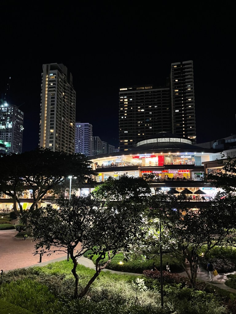 Nachdem die Unterkunft inspiziert und für wenig schön befunden ist, schauen wir uns die Umgebung ein bisschen zu Fuß an. Draußen gefällt es uns schon besser. Außerdem ist hier eine Mall in der Nähe, da spazieren wir einfach mal hin. Sehr schön angelegt mit Innenhof/-park und einigen Restaurants drumherum fühlt sich das gerade ganz gut an. Hier bleiben wir also auch zum Abendessen bevor wir wieder „nach Hause“ gehen.