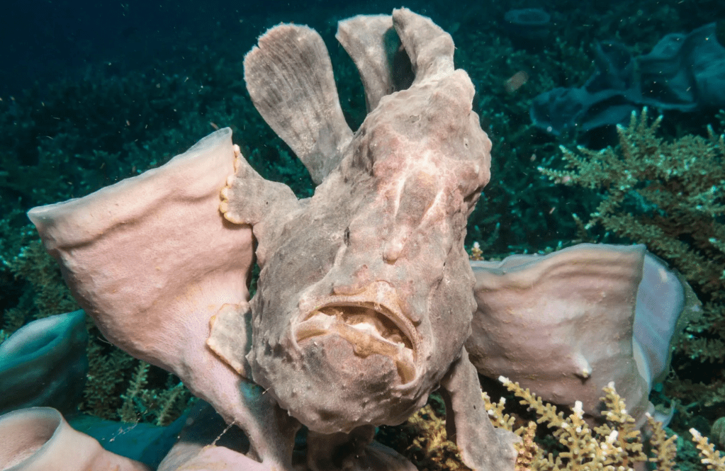 Als der Frogfish sich irgendwann von uns zu sehr beobachtet fühlt, marschiert er davon. Ja – er marschiert, denn Anglerfische sind „zu Fuß“ geschickter unterwegs als beim Schwimmen. Verrückt, oder?!