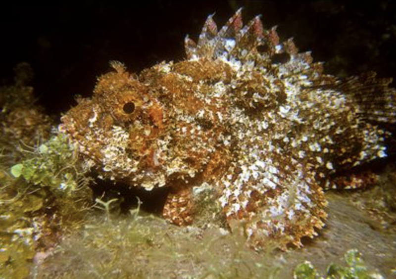Beim Nachttauchgang haben wir auch nochmal Glück und bekommen einen knallgelben Frogfish (Anglerfisch) aus nächster Nähe zu beobachten. Unser Dive Master hat einen stabilen Scheinwerfer dabei, etwas zu sehen ist also kein Problem.