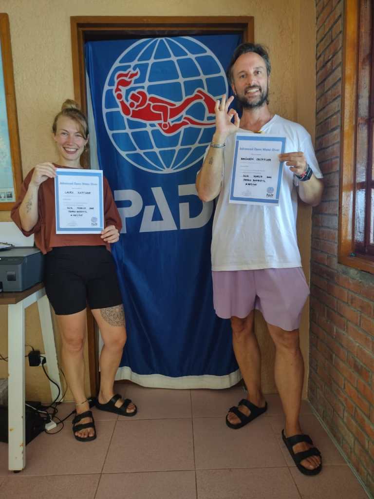 Am Tag danach heißt es Abschied nehmen vom Paradies. Es gibt nochmal Kaffee und ein Stärkung im zugehörigen Lokal, wir loggen alle unsere Dives mit den zugehörigen Details… und damit sind wir jetzt zertifizierte Advanced Open Water Diver 😱