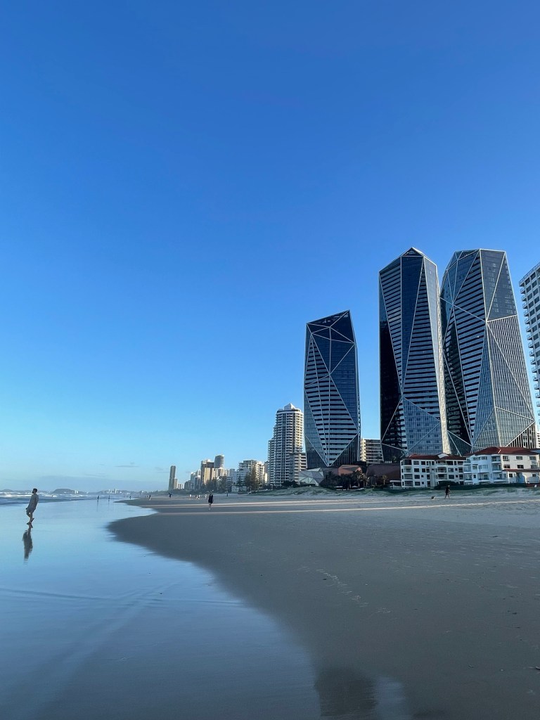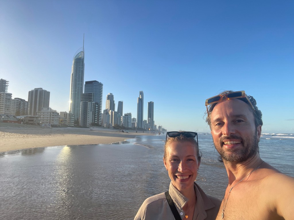 Als Aeron dann seinen Arbeitstag starten muss, düsen wir auch endlich los. Die Strecke ist wieder kurz, es geht an die Gold Coast. Die allermeiste Zeit auf der Reise hatten wir Einzelzimmer oder ganze Wohnungen für uns, gelegentlich ein Zimmer innerhalb einer Wohnung wie in Brisbane. Ab der Goldcoast wird’s aber haarsträubend und wir „gönnen“ uns noch ein paar Nächte in moderateren Unterkünften. Touch base quasi, um die Bodenständigkeit nicht zu verlieren. Immerhin sind wir hier seit knapp 3,5 Monaten unterwegs.
