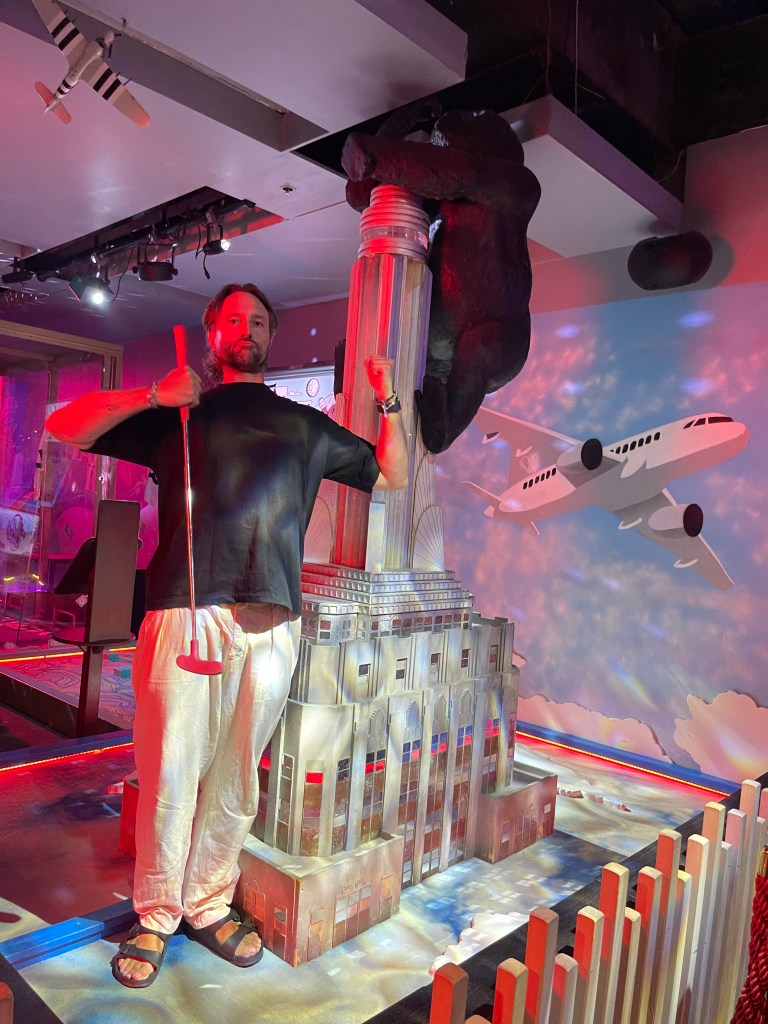 Nachdem wir die Kalorien losgeworden sind, holen wir uns bei Pizza direkt wieder welche zurück und gehen dazu noch eine Runde Minigolf spielen.