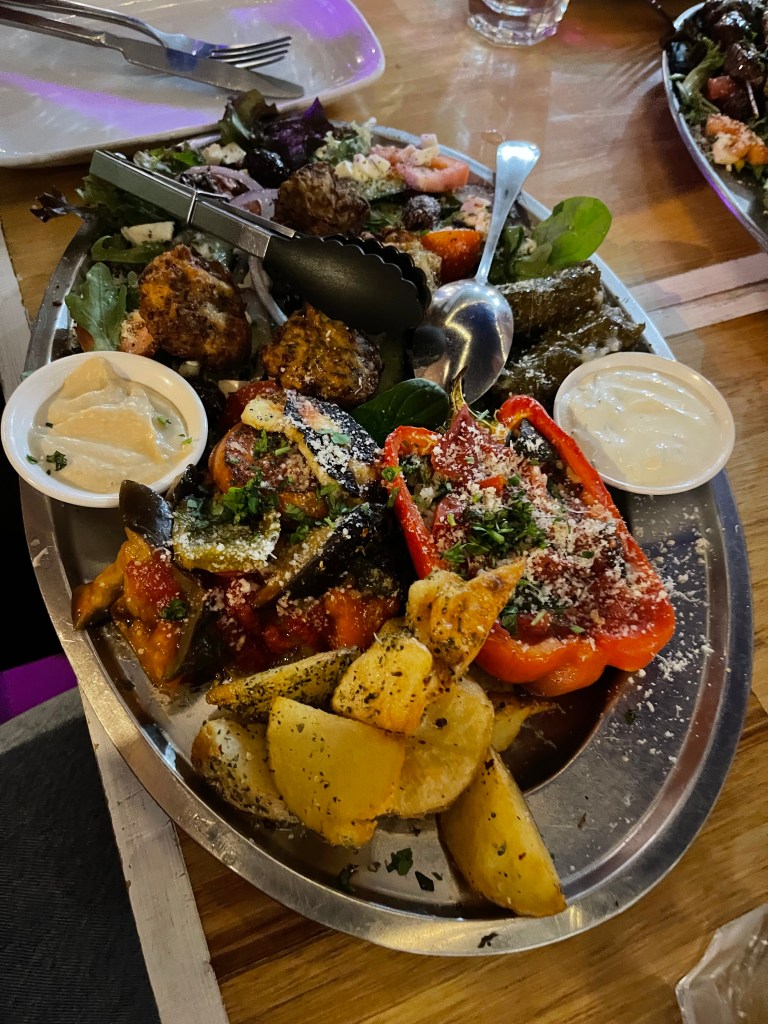 Abends treffen wir uns wieder mit Chris. Er und seine Frau Susan entführen uns zu ihrem Lieblingsgriechen. Ein hübsches, familiengeführtes Lokal in einem belebten Sträßchen in Byron und ein kulinarischer Volltreffer, die mixed veggie Platter ist ein Träumchen.