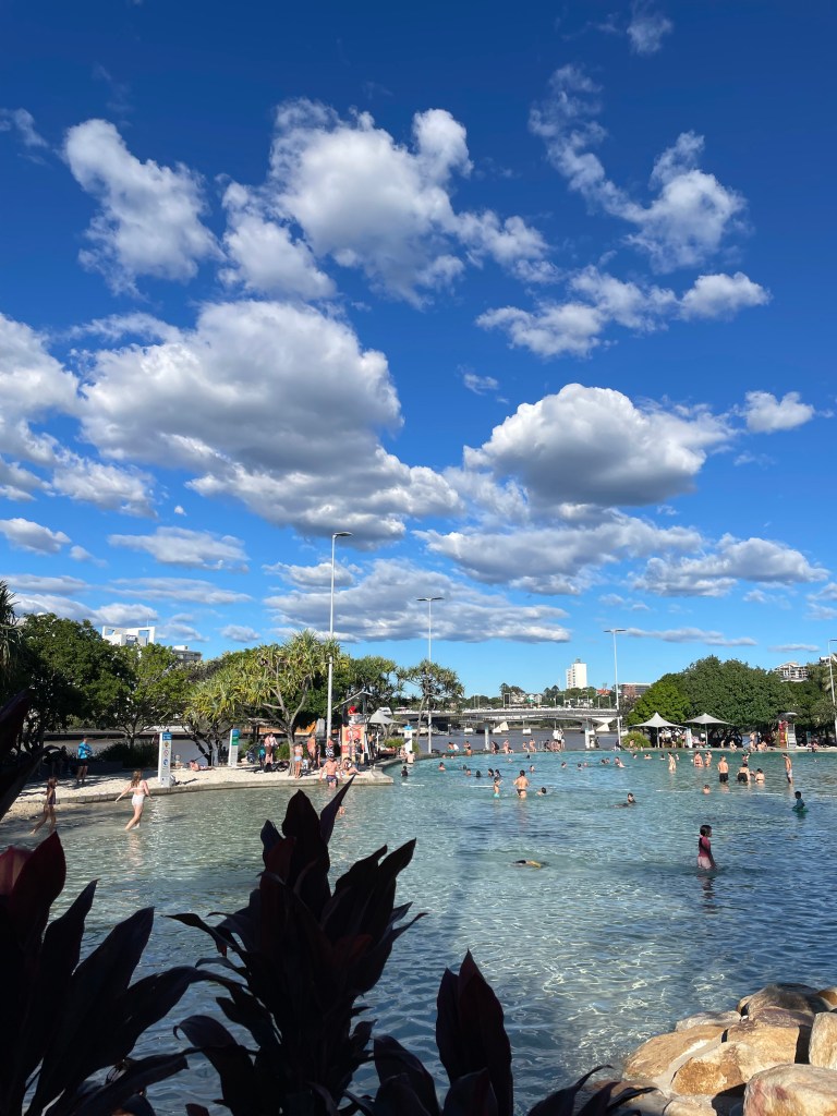 Nach unserer Ankunft laden wir kurz das Auto aus und machen uns auf den Weg in die Innenstadt. Angeblich soll ja die Southbank sehr schön sein und günstig parken kann man dort auch, meinten unsere Vermieter… und sie haben nicht gelogen, das Parkhaus ist günstig und die Promenade am Fluss ist ein echter Hingucker. Wir spazieren also eine ganze Weile durch die Gegend am Brisbane River entlang, bestaunen den botanischen Garten, freuen uns über die schön angelegten -und kostenlosen!- Freibäder und Becken zwischen den Grünanlagen, genießen vegane Burger und gönnen uns zum Tagesabschluss noch einen echten Blockbuster im Kino: Godzilla x Kong – The New Empire.