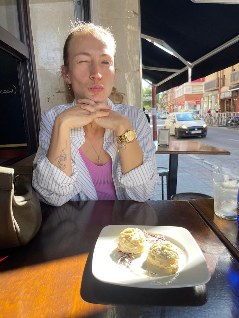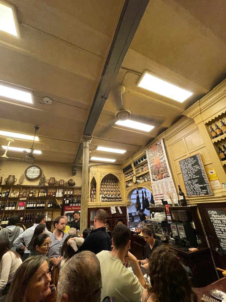 Was uns überfordert, ist dann aber die chaotische Bedienung hinterm Tresen. Ein bisschen durchgepeitscht von der übervollen Bar und einer vermutlich seeeehr langen Schicht, erklärt sie uns ein paar der Gerichte. Ihr spanisch ist zu schnell, wir verstehen nicht alles – sie versucht es zwischendurch auf englisch, aber auch das verstehen wir nicht. Diesmal liegt es aber nicht an uns 😬