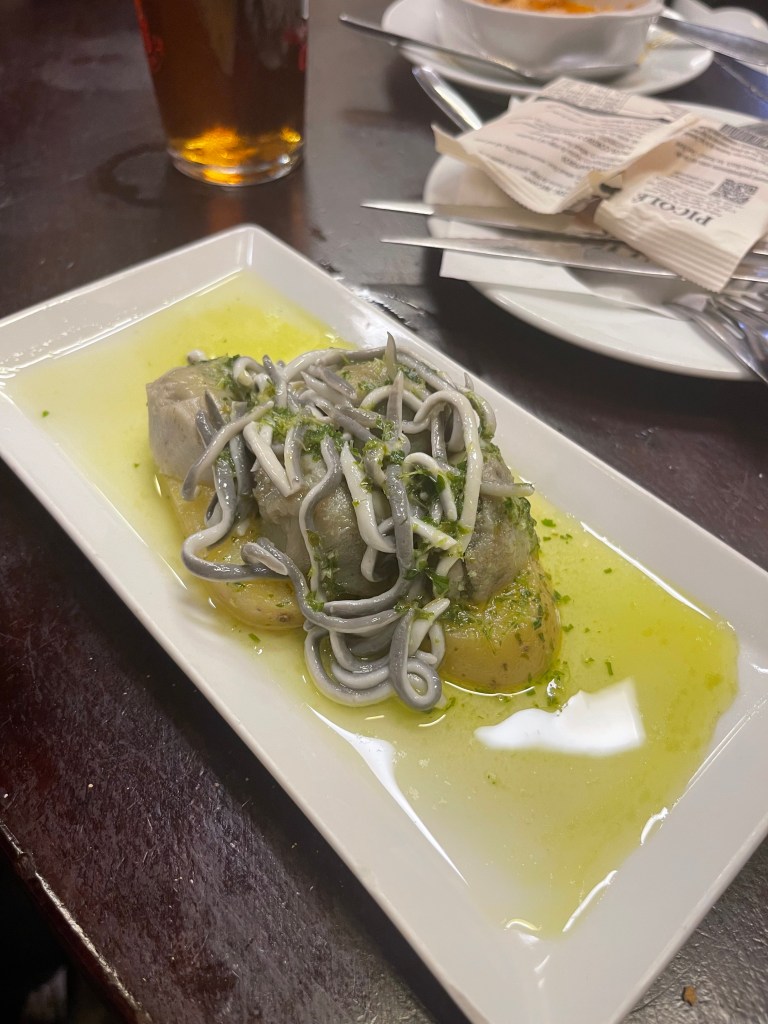 In Thailand gab’s schon Insekten an Balsamico Dressing und gegrillten Skorpion, das ging alles und war sogar einigermaßen lecker. Aber was mich tatsächlich an meine kulinarische Grenze bringt, ist diese niedliche Tapasbar in Sevilla 😅