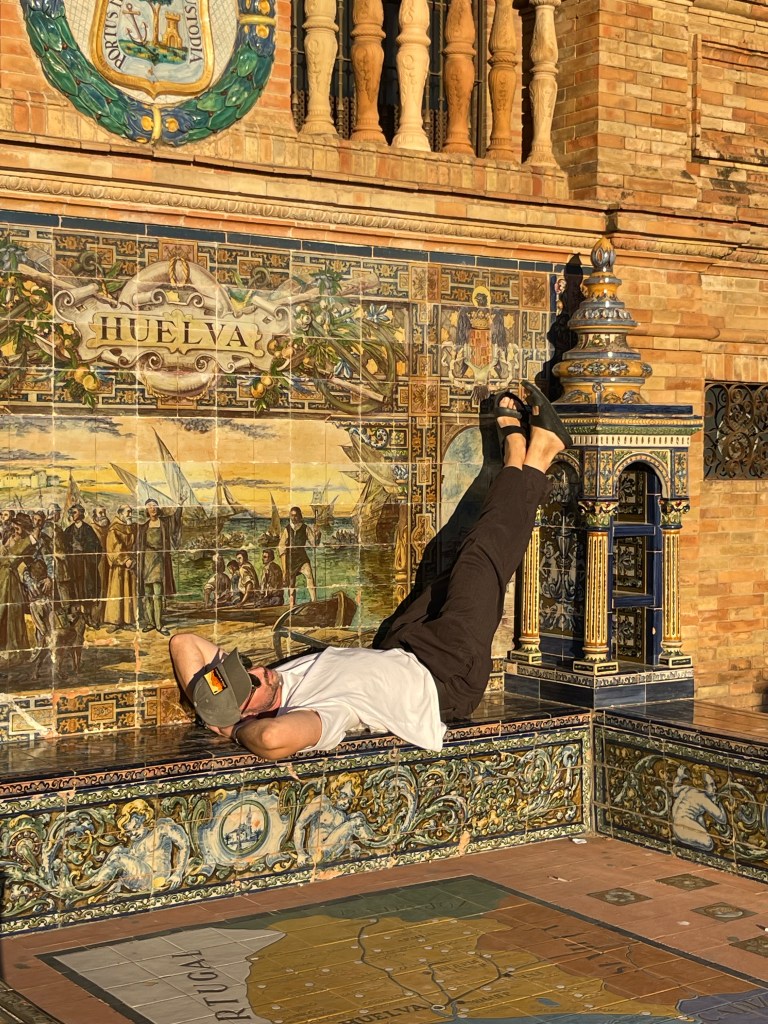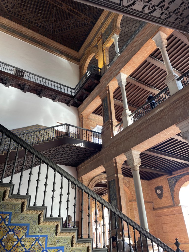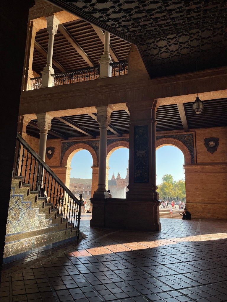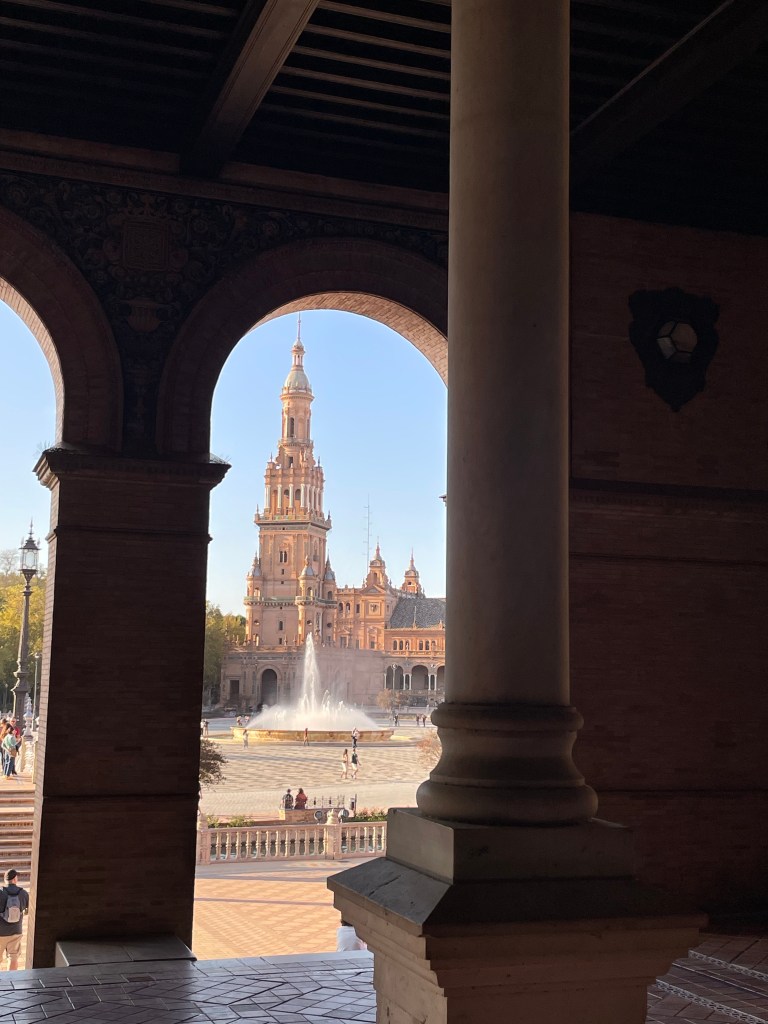 Montag und Dienstag geht’s nach der Vorlesung vor allem nochmal raus, Sonne tanken, spazieren und Eindrücke sammeln. Außerdem laufen wir nochmal zur Plaza de España, die 1929 zum Zwecke der iberoamerikanischen Ausstellung gebaut wurde. Die halbkreisförmige Gestaltung des Gebäudes soll übrigens eine Umarmung der ehemaligen lateinamerikanischen Kolonien durch Spanien darstellen.